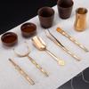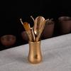 Juego de té de kung fu para seis caballeros, ceremonia del té de latón, juego de té de seis piezas para caballeros, herramientas para preparar té, pinza para té, cuchillo para té, cuchara para té