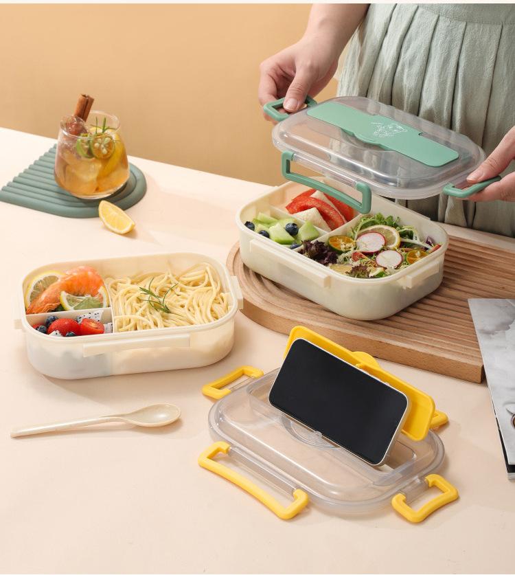 Lonchera de Plástico con Compartimentos, Lonchera de PP Sellada, Lonchera Apta para Microondas para Trabajadores de Oficina y Estudiantes para Separar Comidas