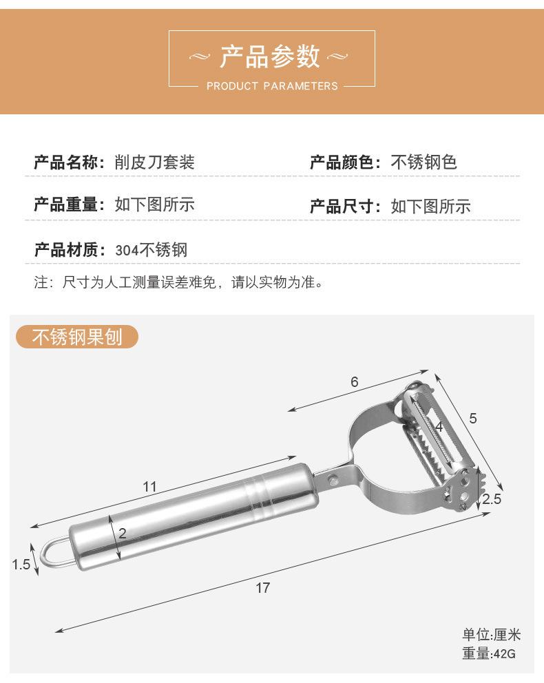 Cuchillo Pelador de Acero Inoxidable Juego de Tres Piezas Rallador de Fruta Zanahoria Cocina Multifuncional Rallador de Melón Pelador Venta al por Mayor