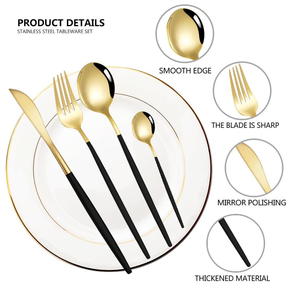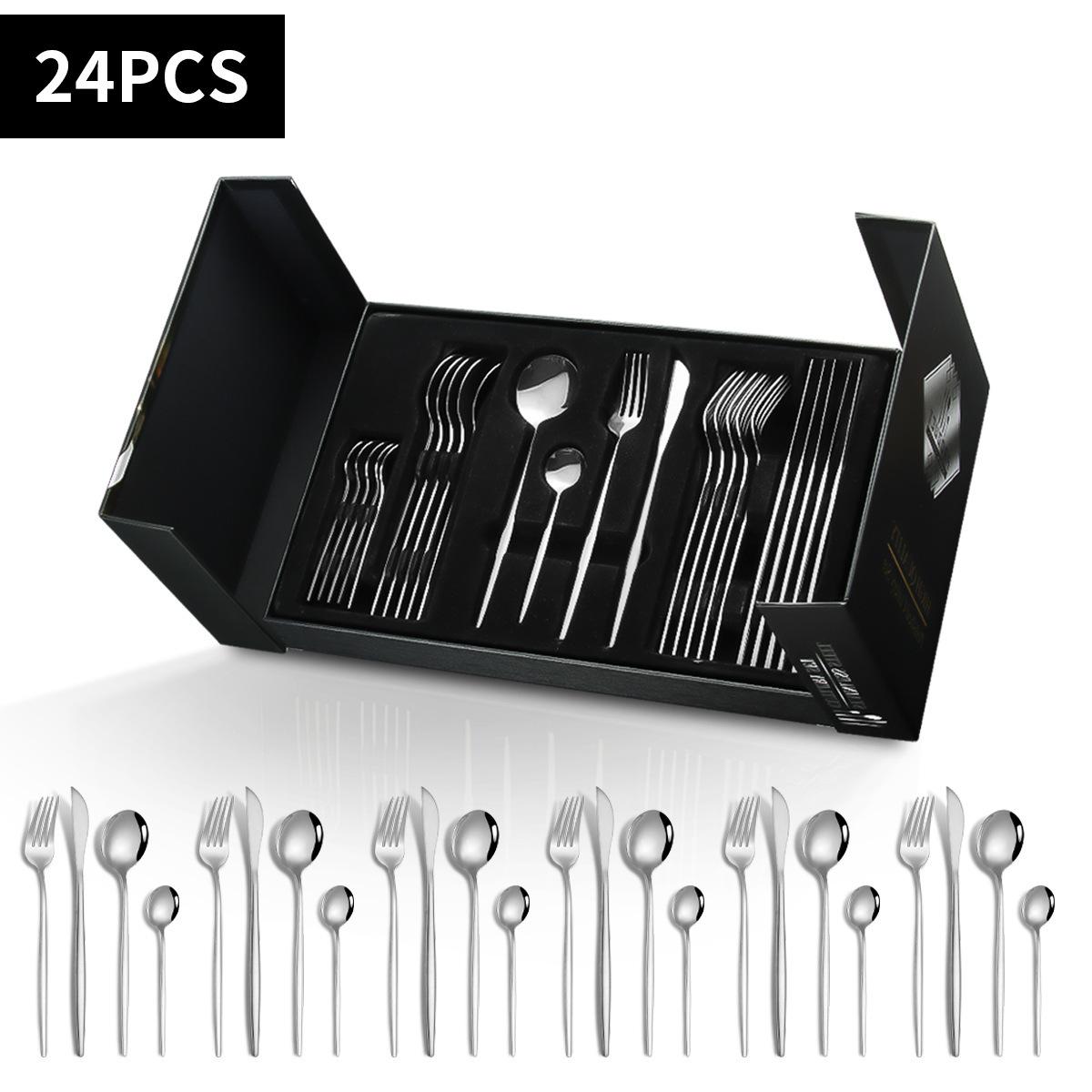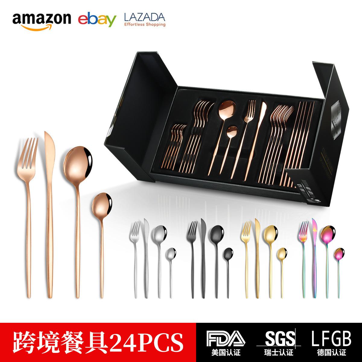 Compra Cubertería transfronteriza Amazon comida occidental caliente portuguesa de acero inoxidable, juego de cubiertos de cuchillo, tenedor y cuchara, juego de 24 piezas en caja de regalo al por mayor en Joom.pro