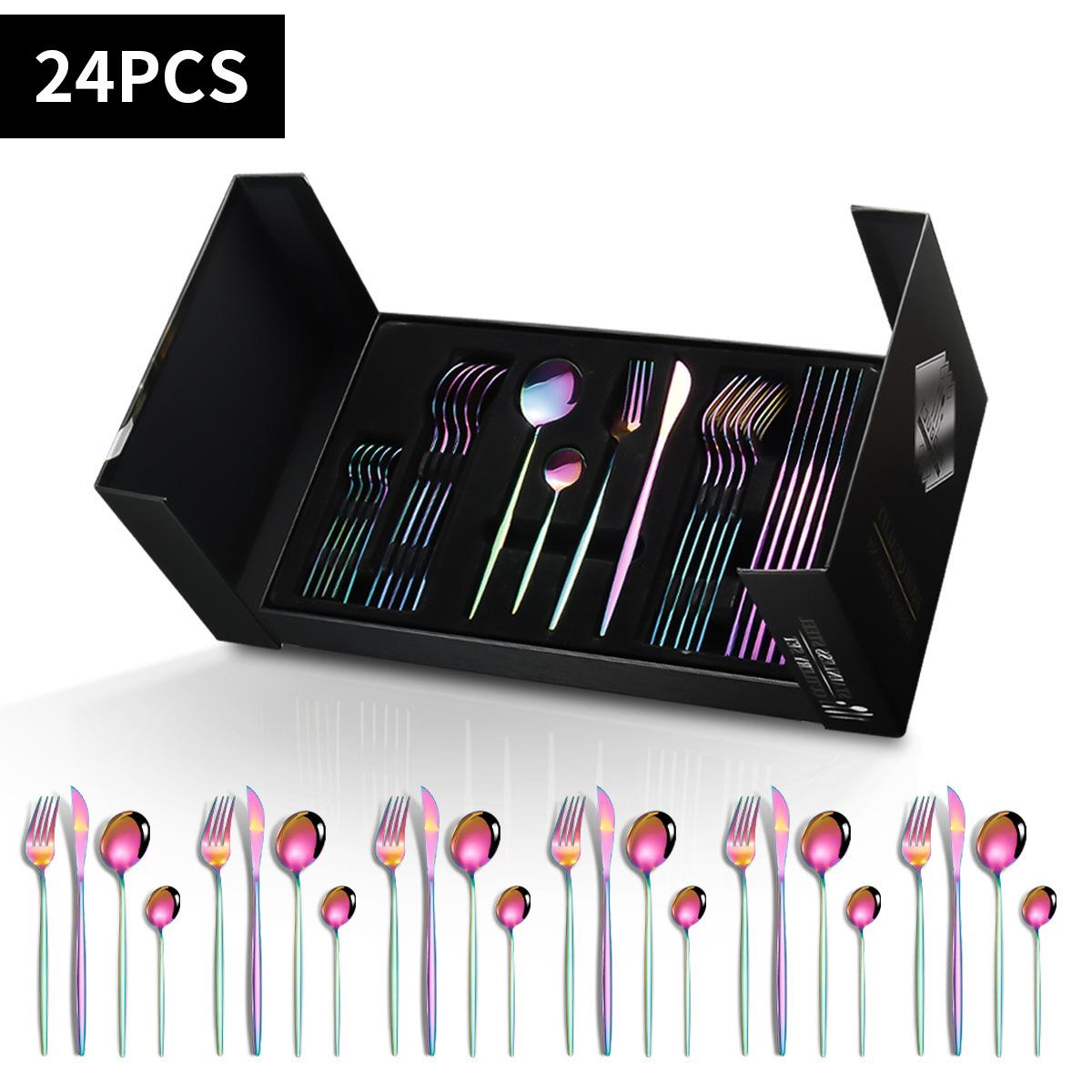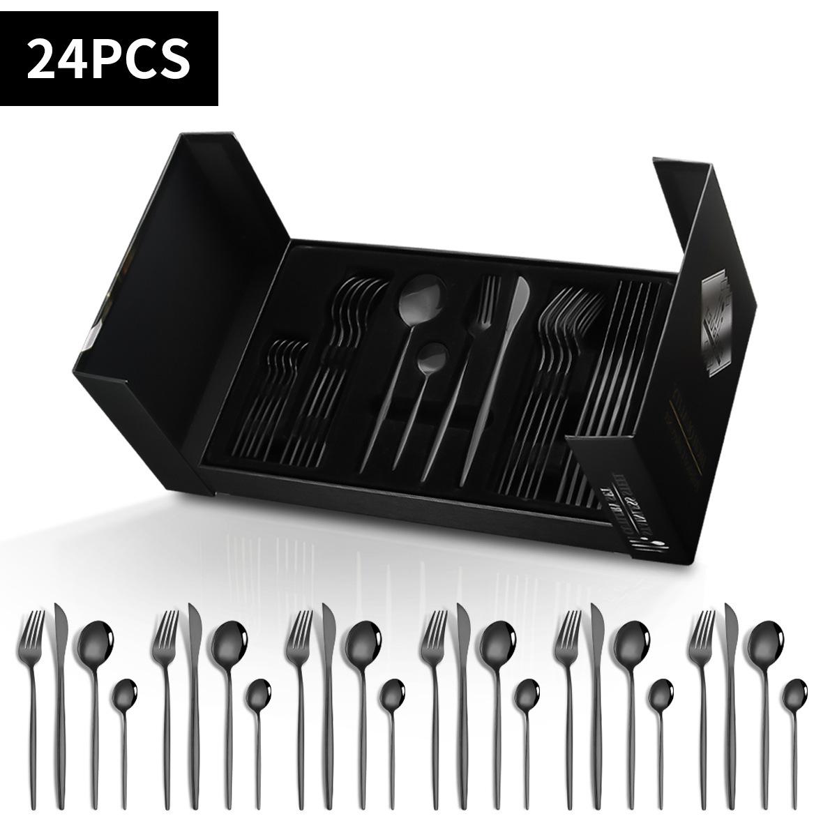Cubertería transfronteriza Amazon comida occidental caliente portuguesa de acero inoxidable, juego de cubiertos de cuchillo, tenedor y cuchara, juego de 24 piezas en caja de regalo