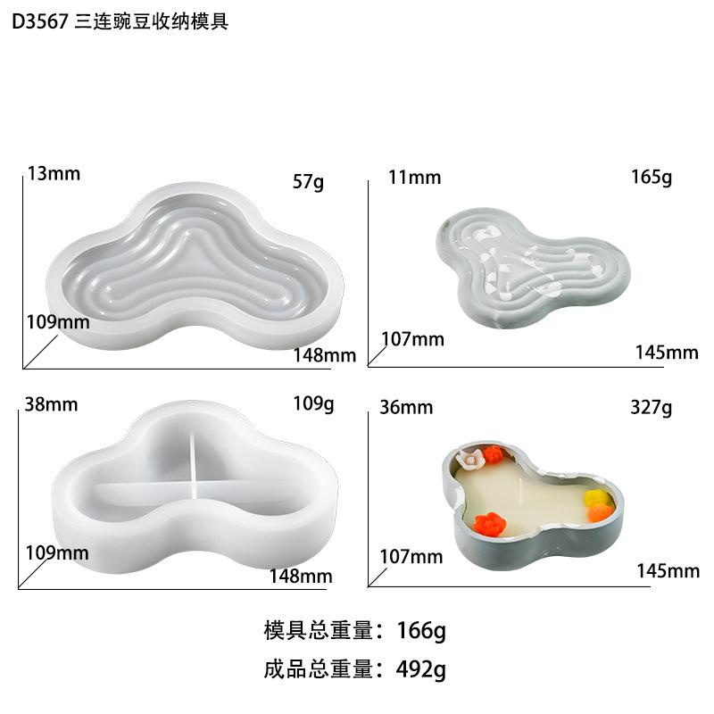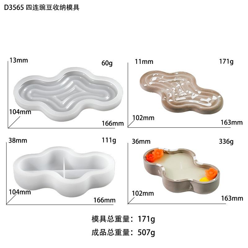 D3568-bow storage box mold, D3566-Erlian Pea Storage Box Mold, D3567-Triple Pea Storage Box Mold, D3565-four e...
