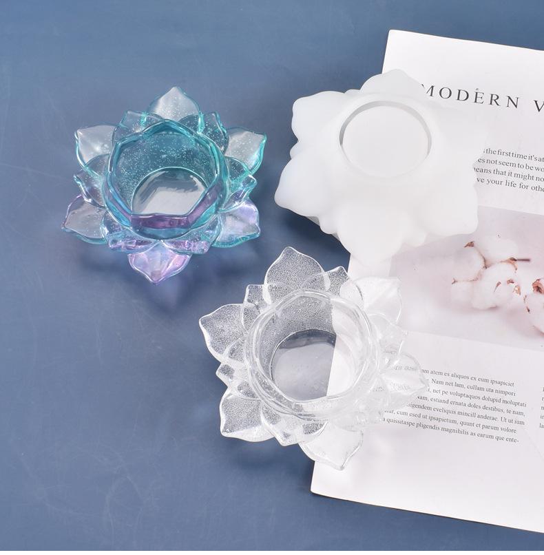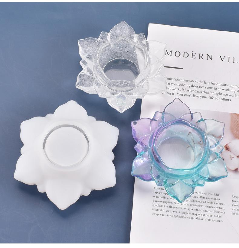 Nuevo molde de cristal DIY creativo hecho en casa caja de almacenamiento flor de loto de mesa molde de silicona de mesa al por mayor