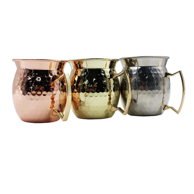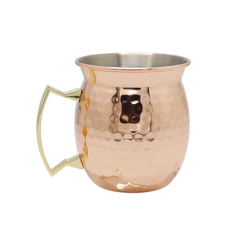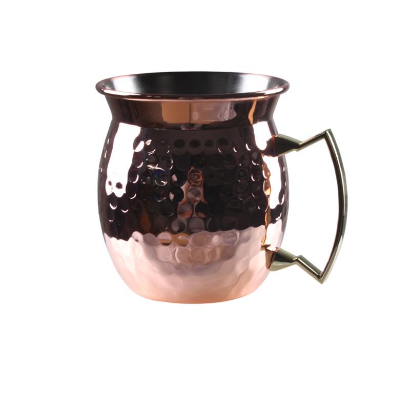 Taza Moscow Mule de Acero Inoxidable 304 moscowmule Taza de Cóctel Acampanada Taza de Metal Rosa con Puntos Martillados