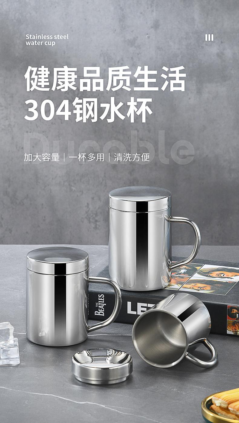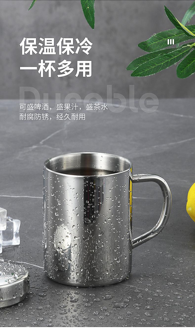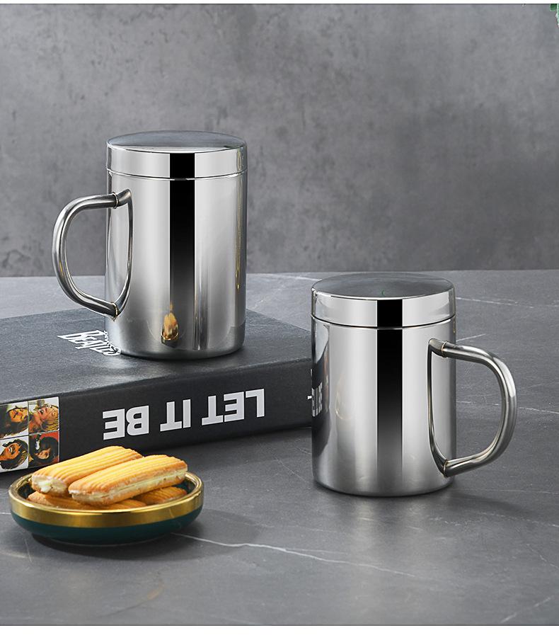 Taza de Doble Capa de Acero Inoxidable 304 con Asa con Tapa Resistente a Caídas Manual Jardín de Infancia Trabajo Oficina 316 Vaso de Agua para Niños