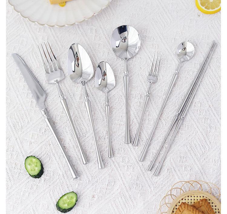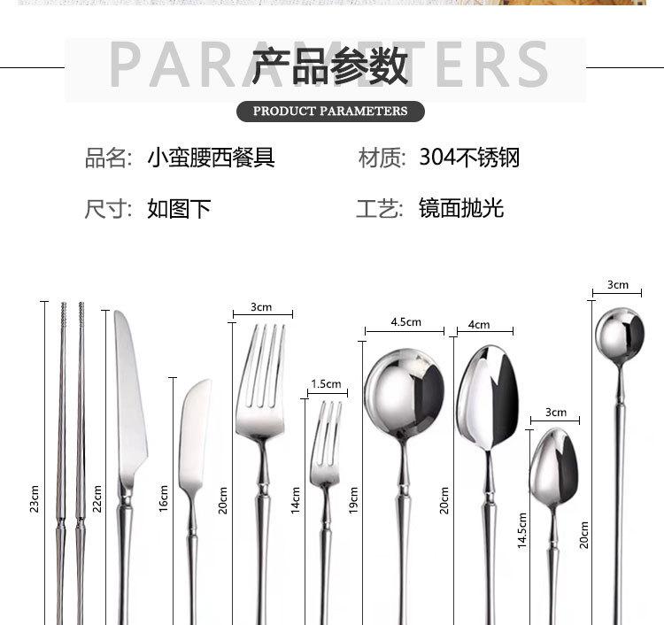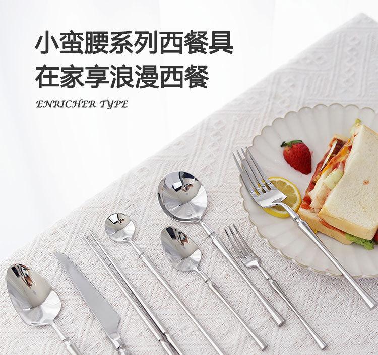 Juego de vajilla de acero inoxidable espejo cintura pequeña para el hogar restaurante cuchillo para bistec tenedor cuchara cuchillo para postre tenedor cuchara venta al por mayor