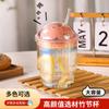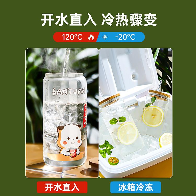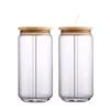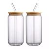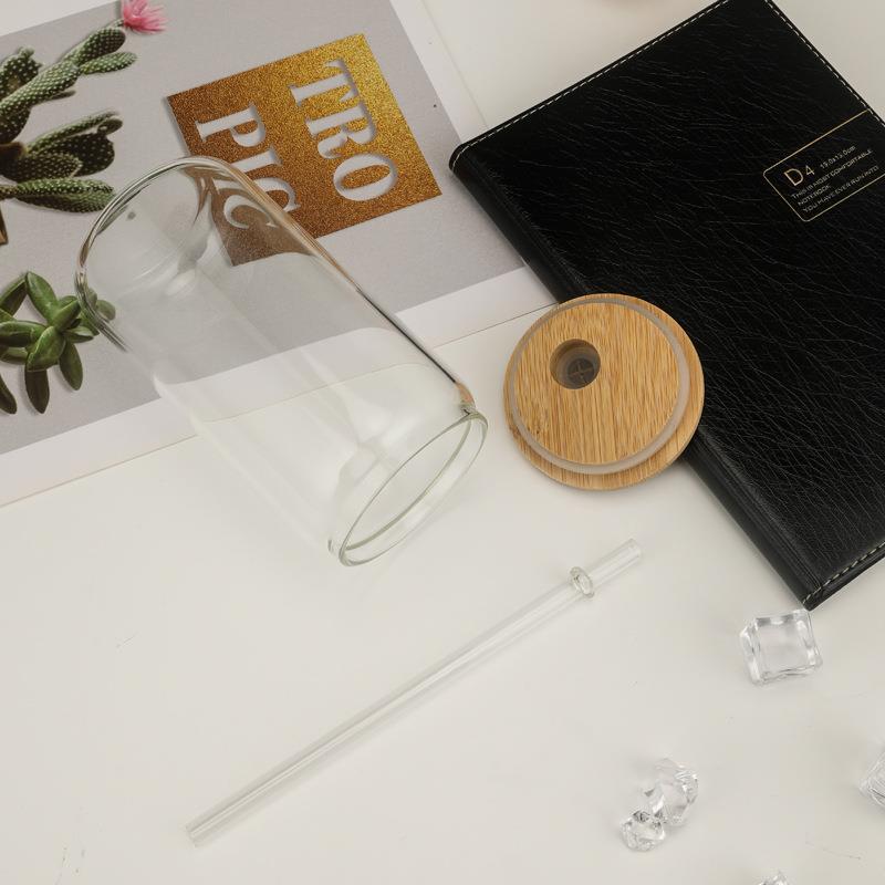 Vaso de agua de vidrio borosilicato de una sola capa, tapa de bambú, vaso cilíndrico con pajita, color sólido transparente, para bebida fría, vaso Mason en stock al por mayor