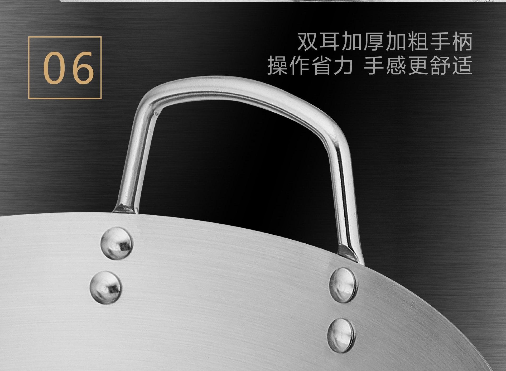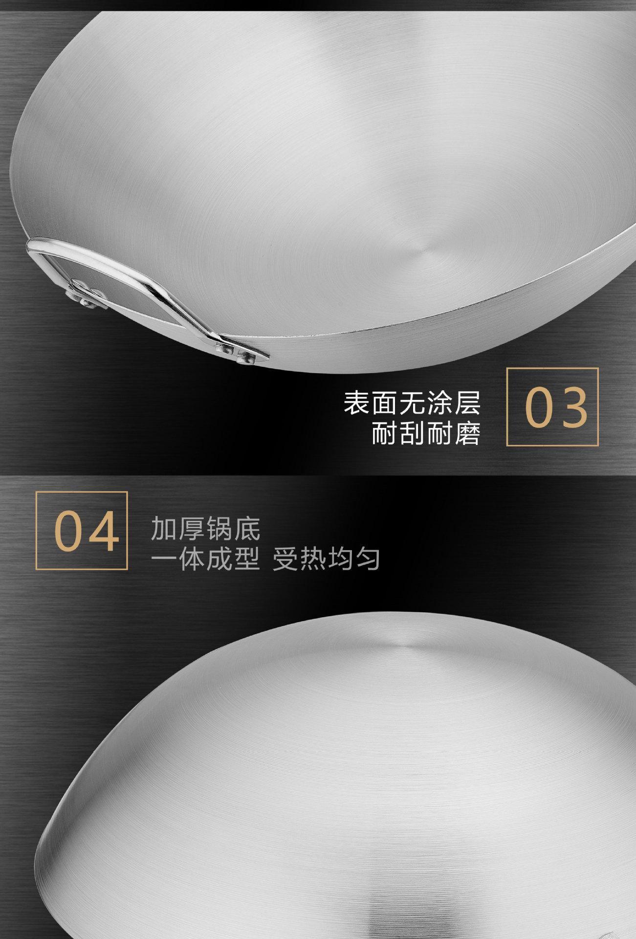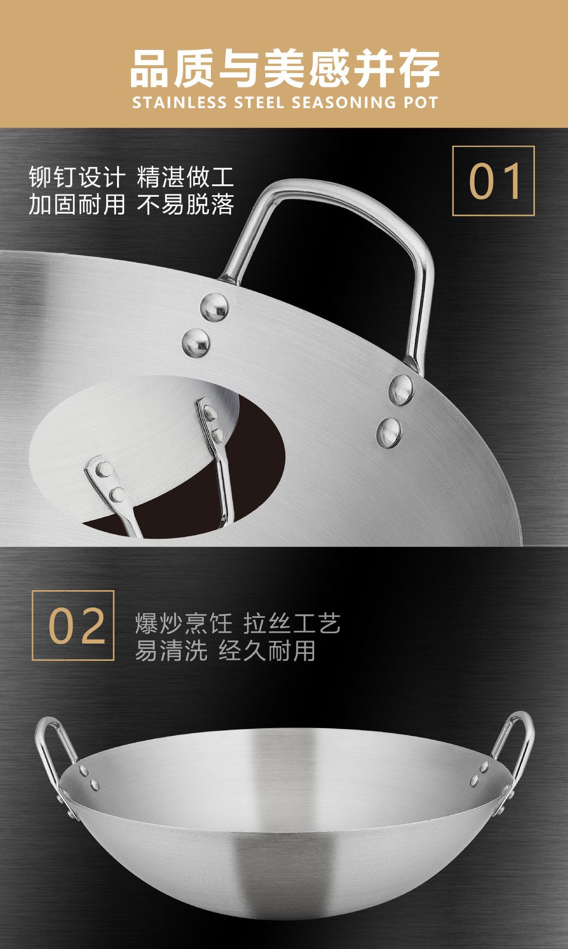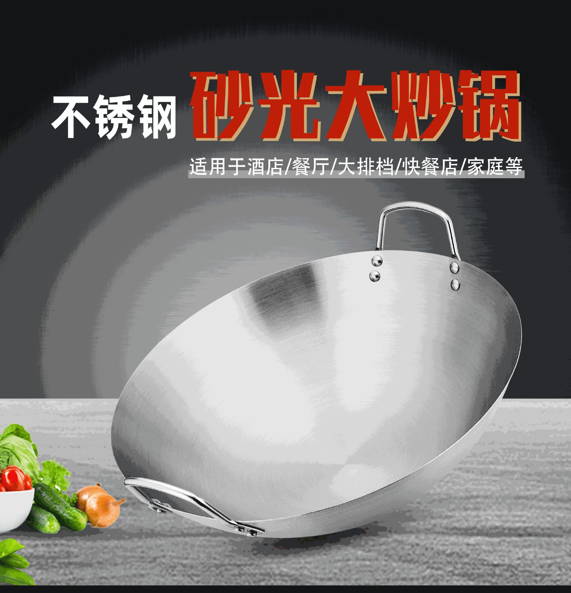 Wok de acero inoxidable para cocina comercial, engrosado, para hotel, restaurante, para freír, trípode, para el hogar, cocina, fondo redondo, mango de acero, mango de madera, olla, transfronterizo