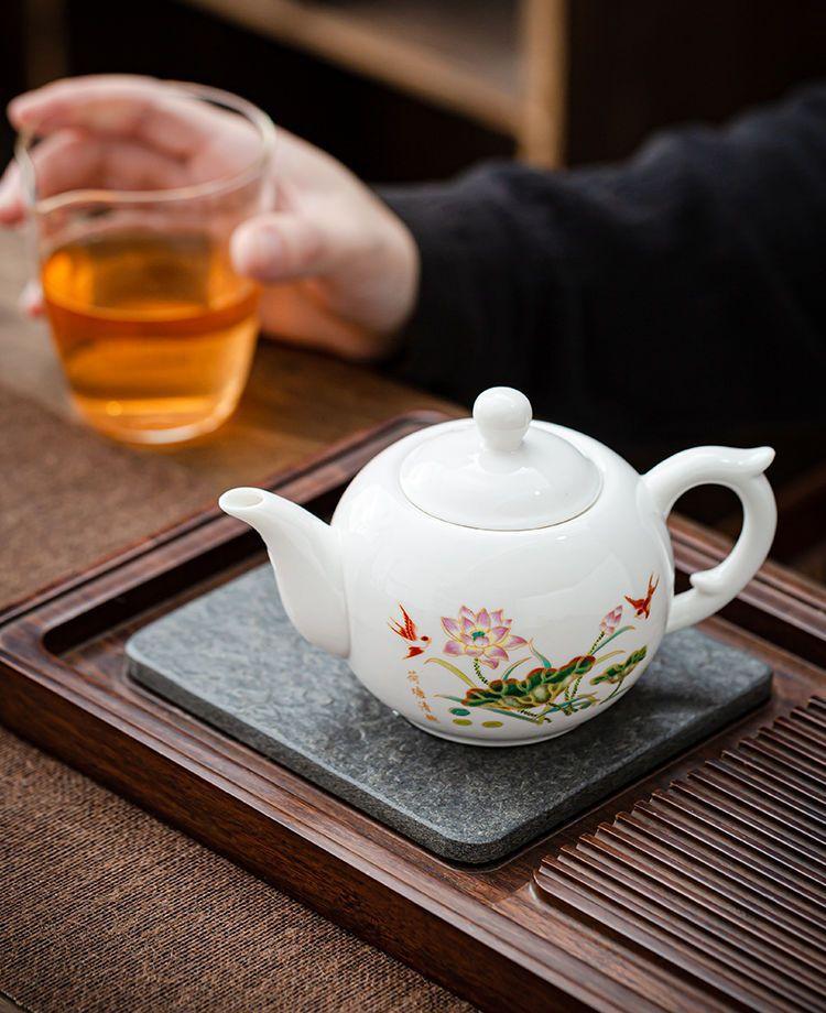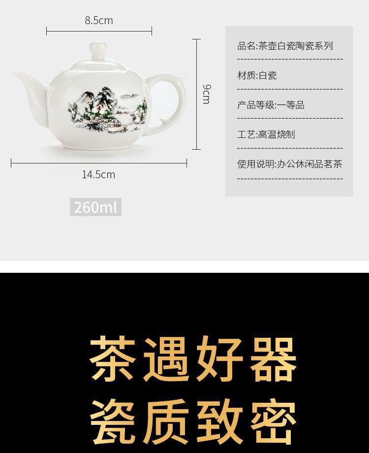 Chinese white porcelain teapot-260ML, Lotus white porcelain teapot-260ML, Landscape white porcelain teapot-260...
