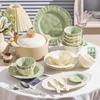 Cuenco de cerámica estilo crema, color sólido, para el hogar, cuenco con pétalos, vajilla, juego completo de caja de regalo a juego autoseleccionada, venta al por mayor