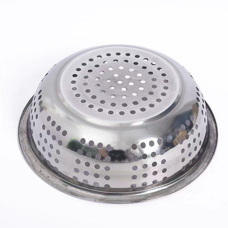 Suministro directo de fábrica, cesta para lavar verduras de acero inoxidable 201 de 32 cm para supermercado, cesta de drenaje para cocina, tamiz de acero inoxidable, venta al por mayor