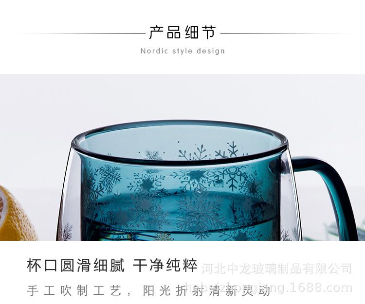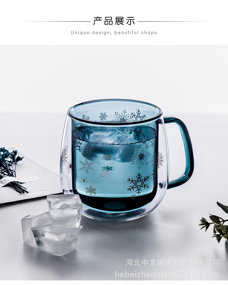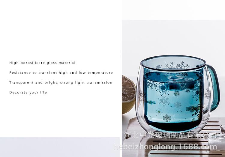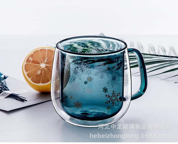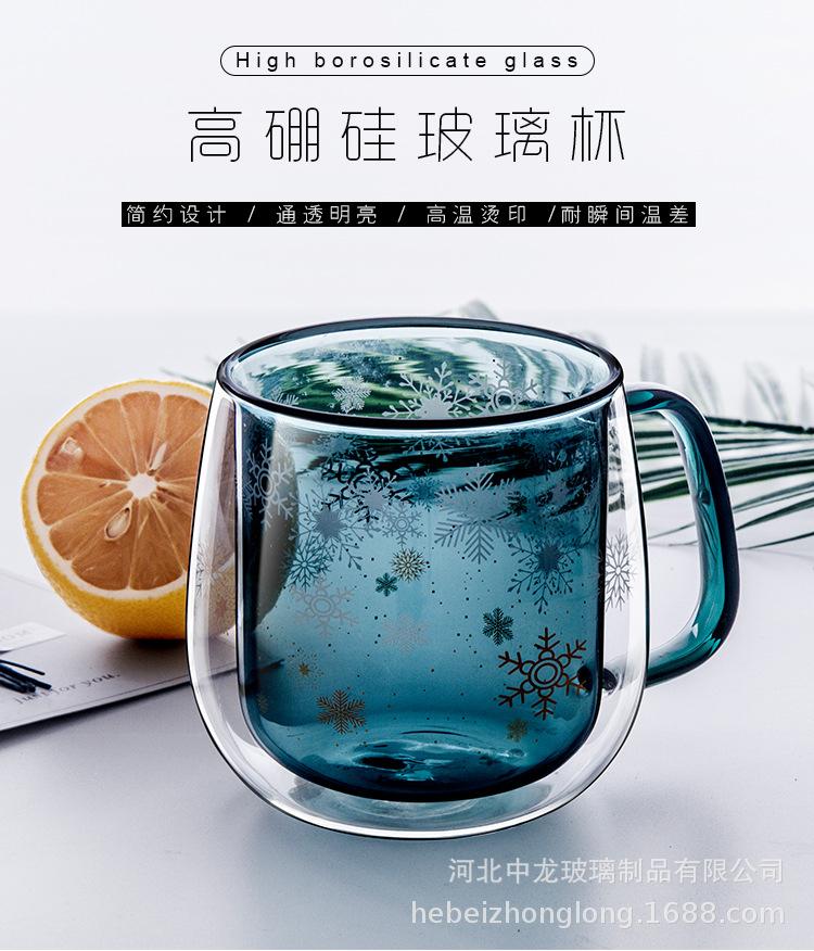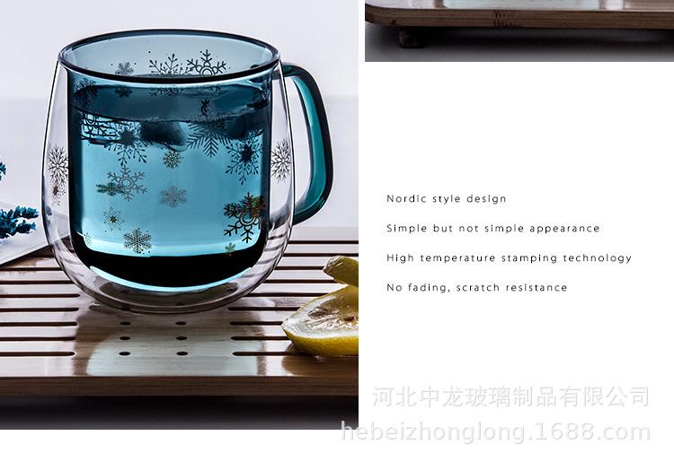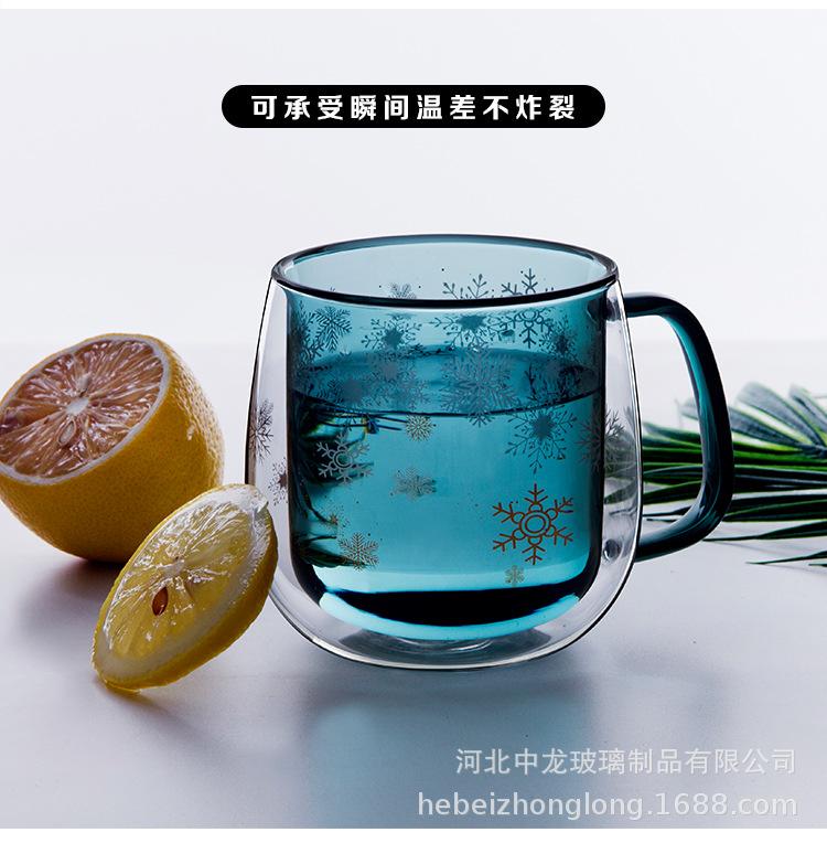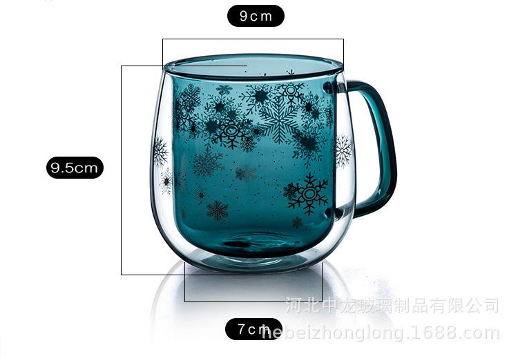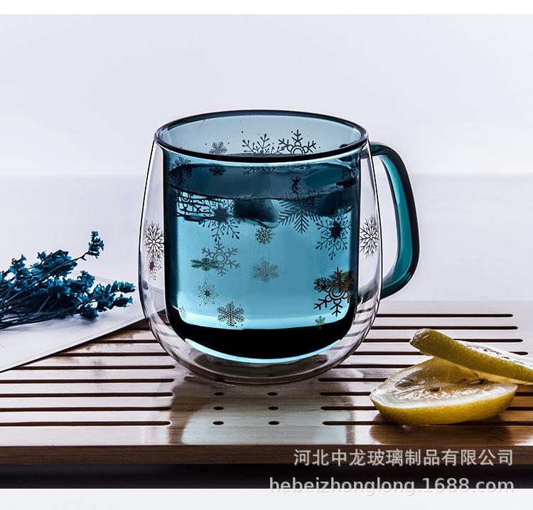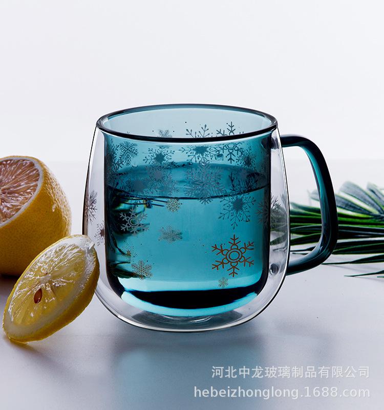 Compra Taza de Copo de Nieve de Vidrio de Doble Capa Vidrio de Borosilicato Alto Taza Resistente al Agua Caliente Taza con Asa Vaso de Vidrio Vaso de Vidrio Verde Bebida con Hielo al por mayor en Joom.pro