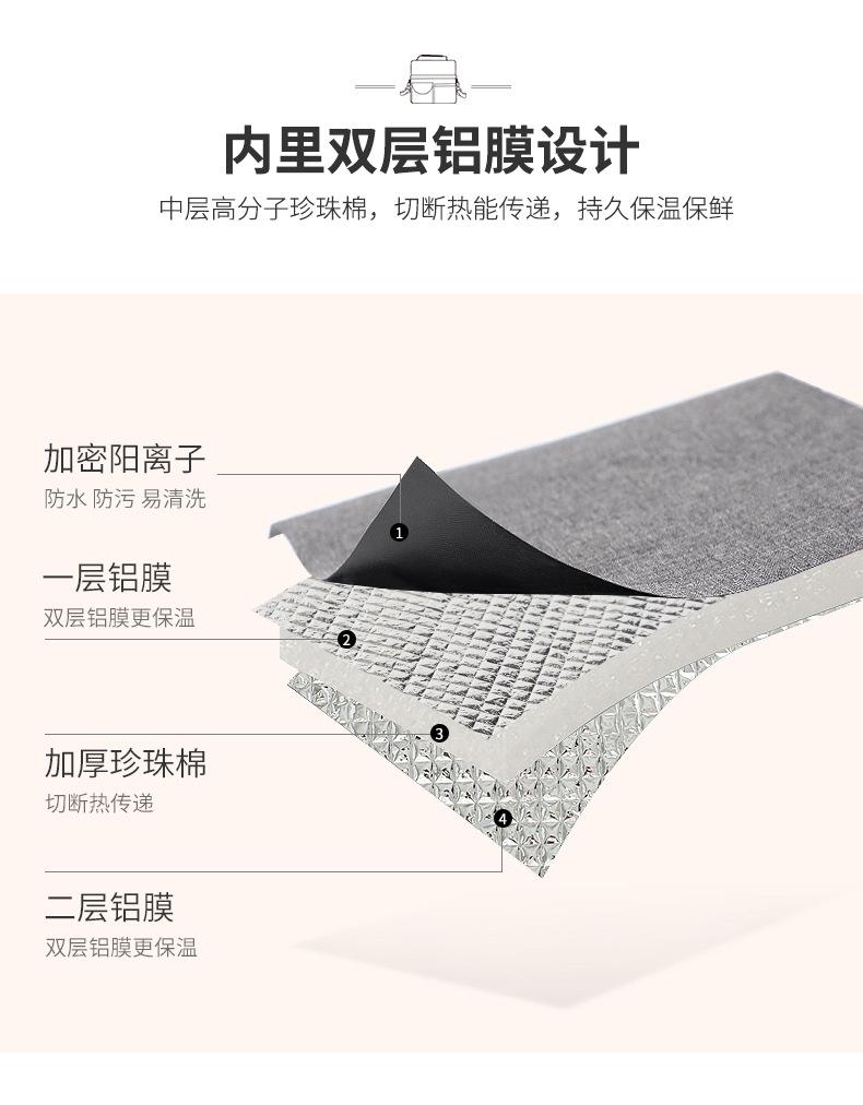 600D cationic PVC + woven aluminum foil Pearl cotton