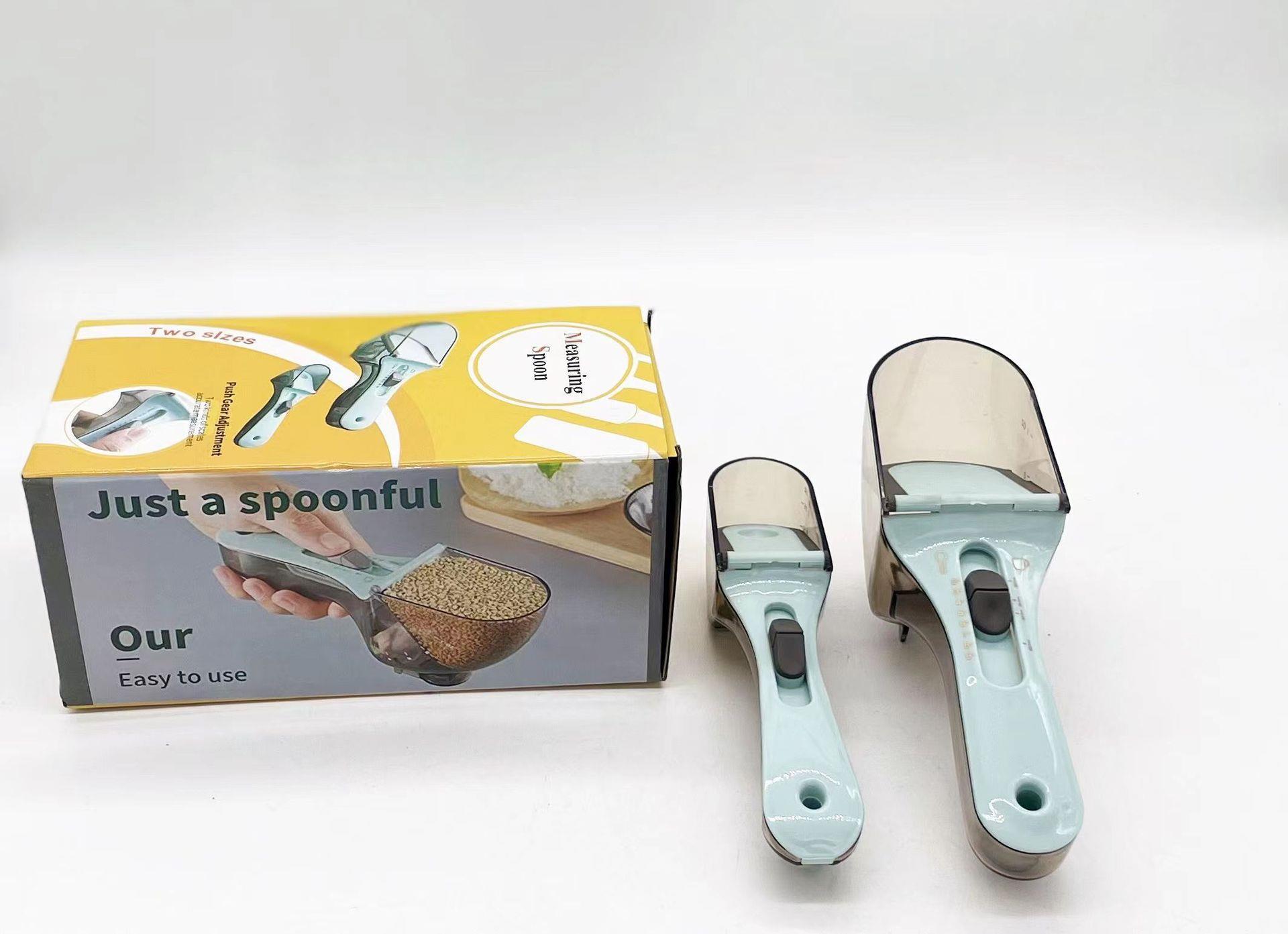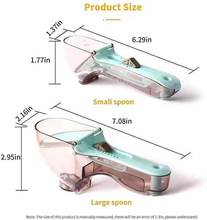 Juego de cucharas medidoras ajustables, herramientas para hornear, cucharas medidoras de condimentos, juego de 2 piezas con escala, cuchara medidora de plástico, taza medidora, venta al por mayor