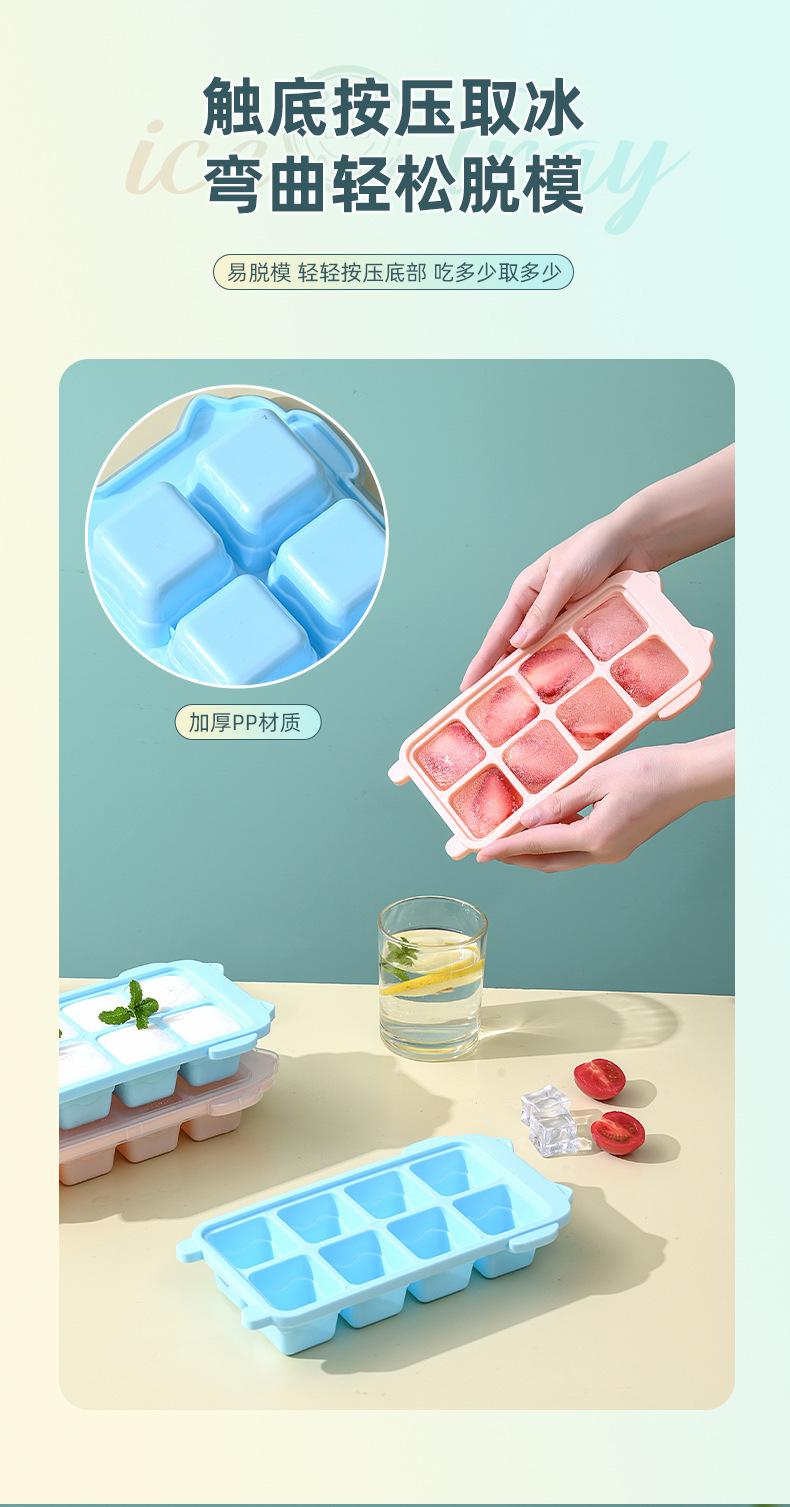 Molde para Cubitos de Hielo Grado Alimenticio Prensa Cubitos de Hielo Hogar Refrigerador Casero Caja de Almacenamiento de Cubitos de Hielo Congelados Hielera