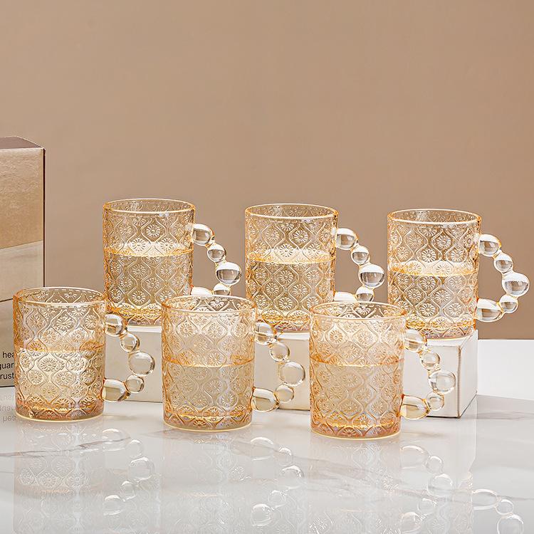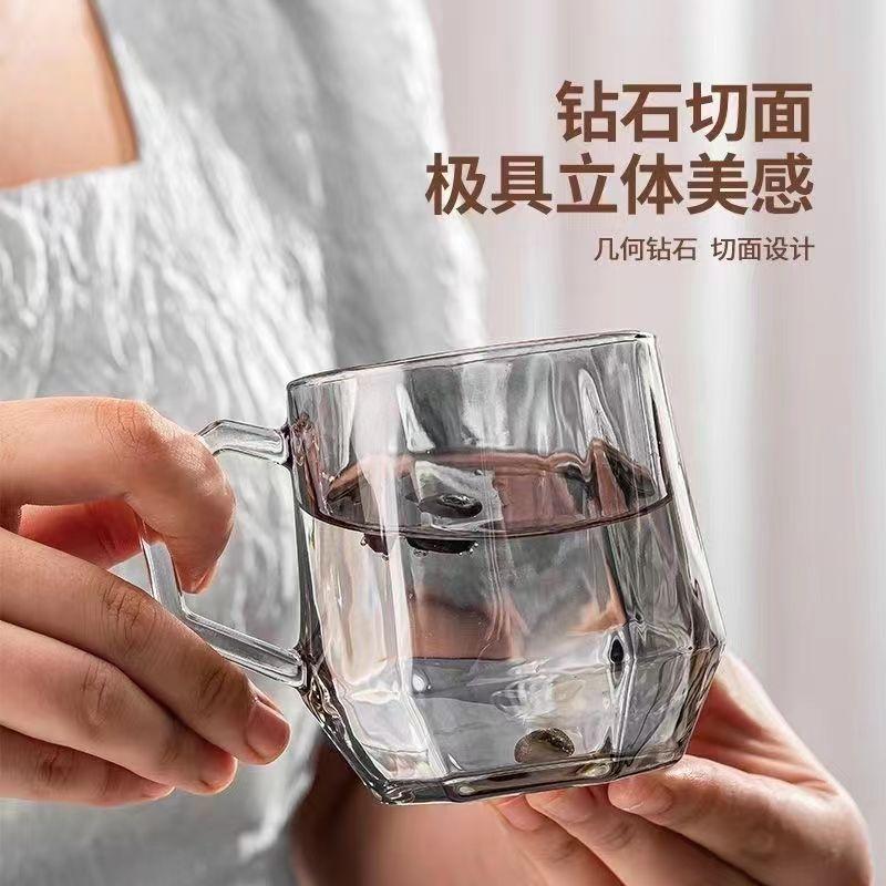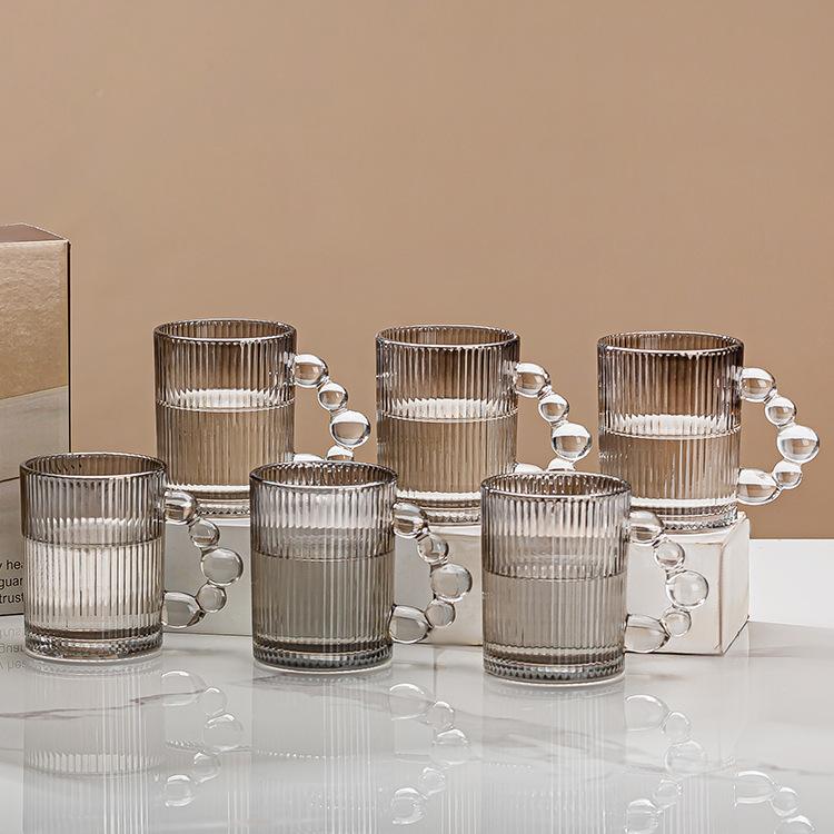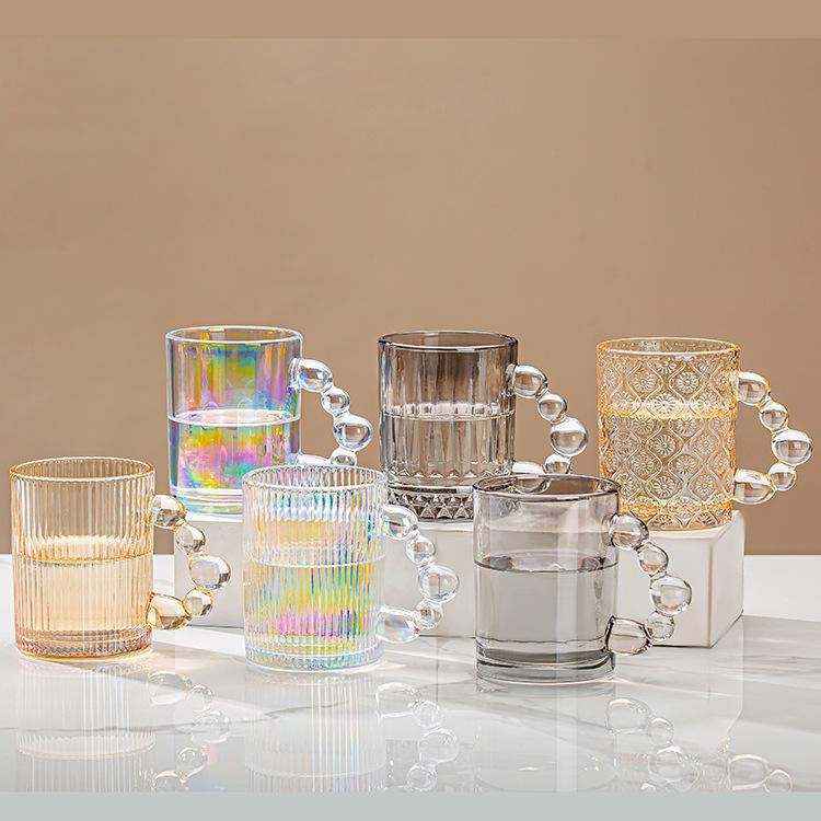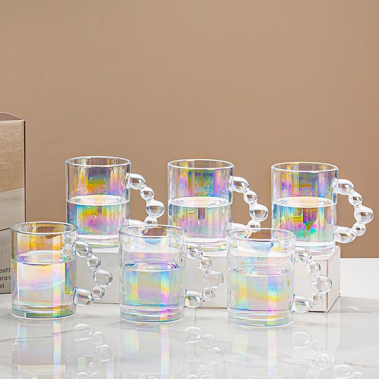 Taza de vidrio para beber, taza de té de vidrio con asa para el hogar, juego de tazas de alto valor de color, taza de café, taza de desayuno