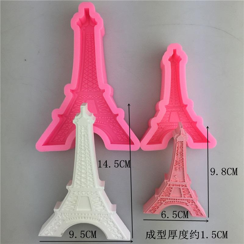Nombre: 2 tamaños diferentes de molde de silicona decorativo con forma de Torre Eiffel para fondant, molde para decoración de pasteles, horneado DIY