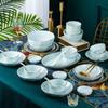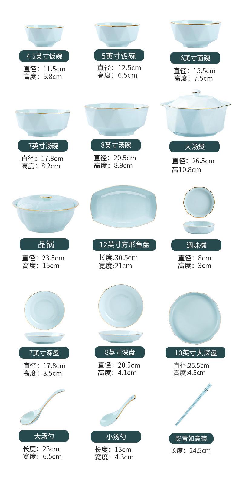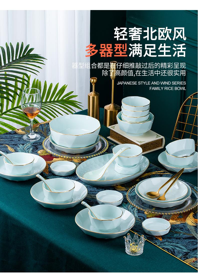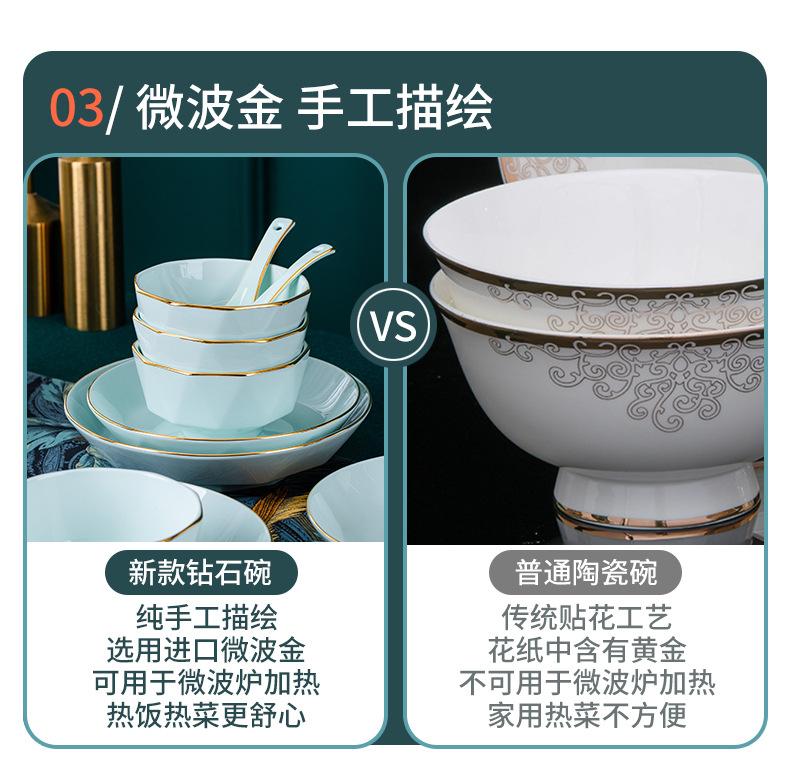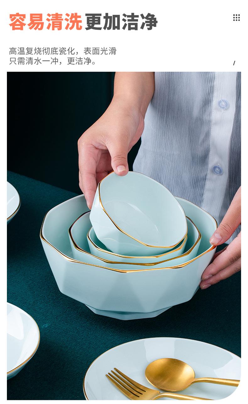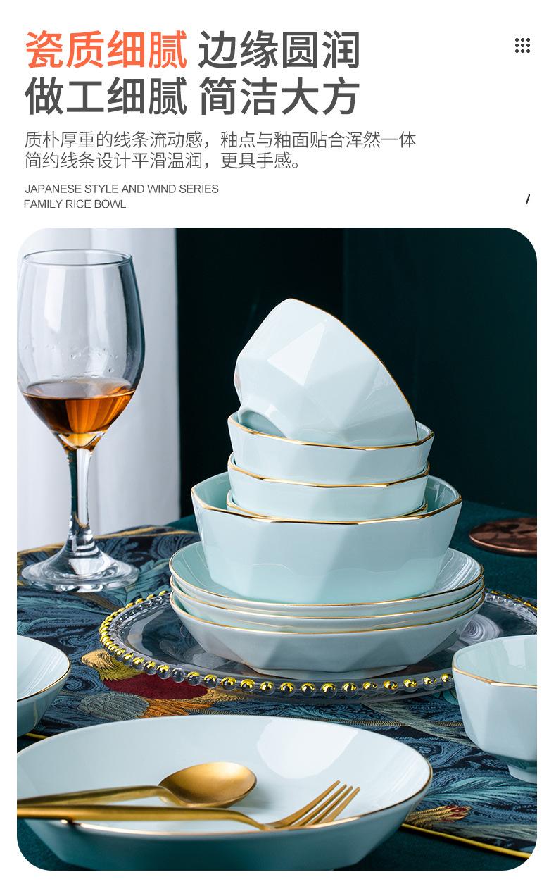 Platos y juego de vajilla de cerámica de alta calidad, tazón de arroz verde, tazón de fideos, tazón de sopa grande, tazón de diamantes dorados hecho a mano de lujo ligero, regalo