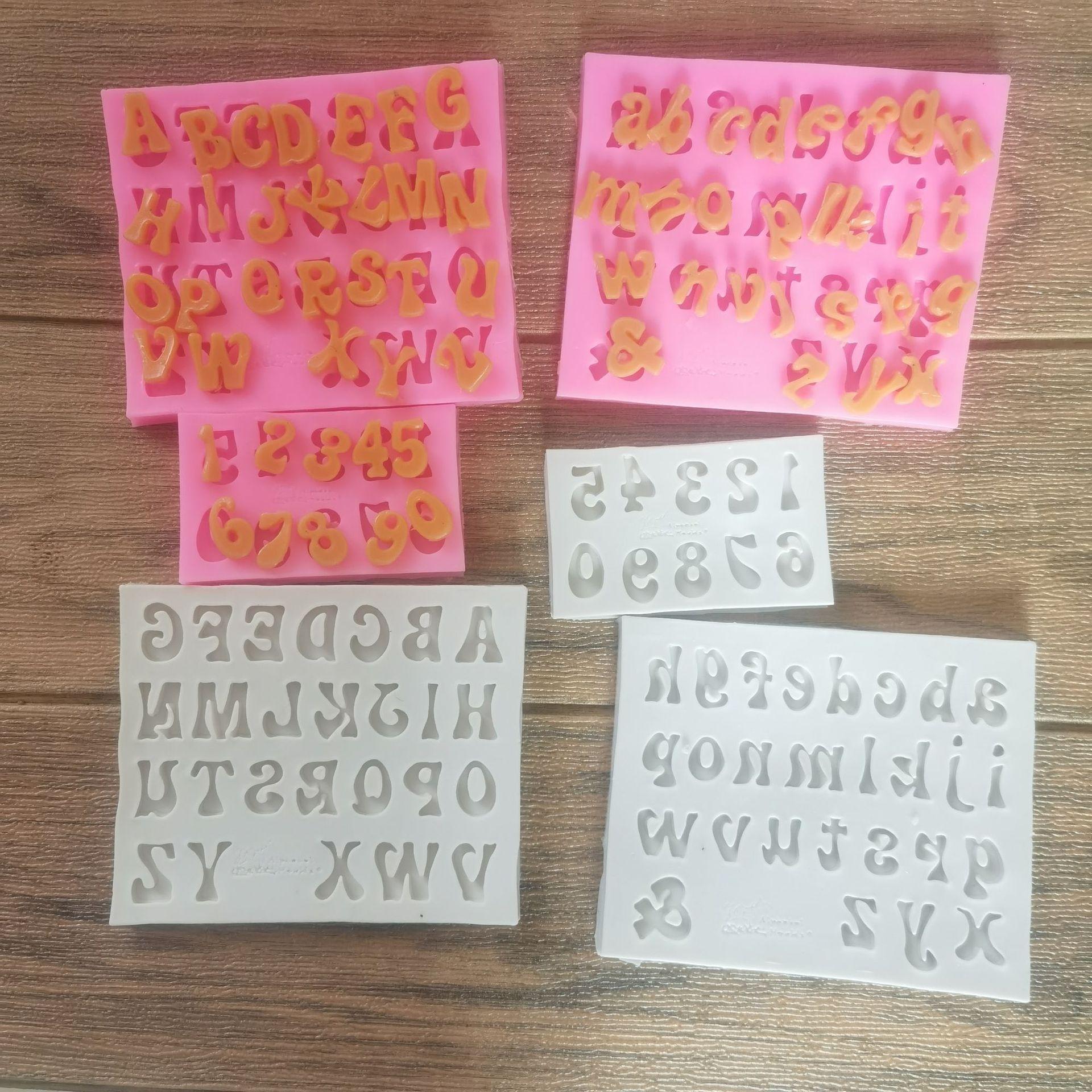 Letras inglesas mayúsculas y minúsculas y números molde para decoración de pasteles fondant chocolate molde de silicona líquida peso 100 gramos y 31 gramos