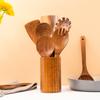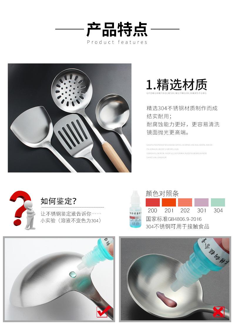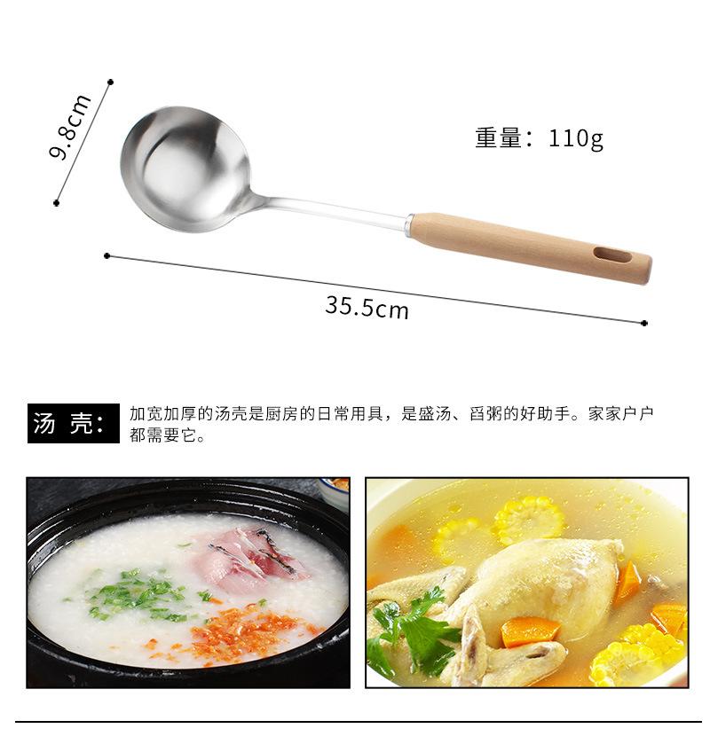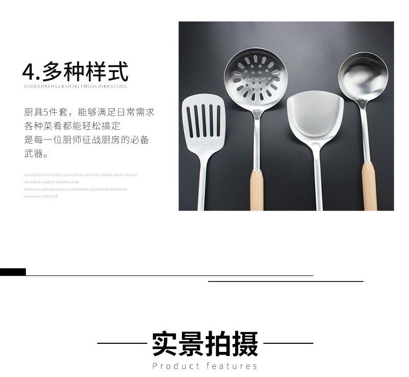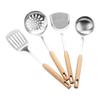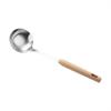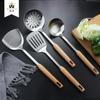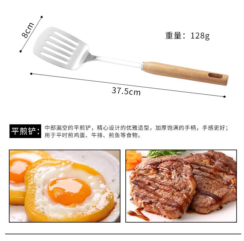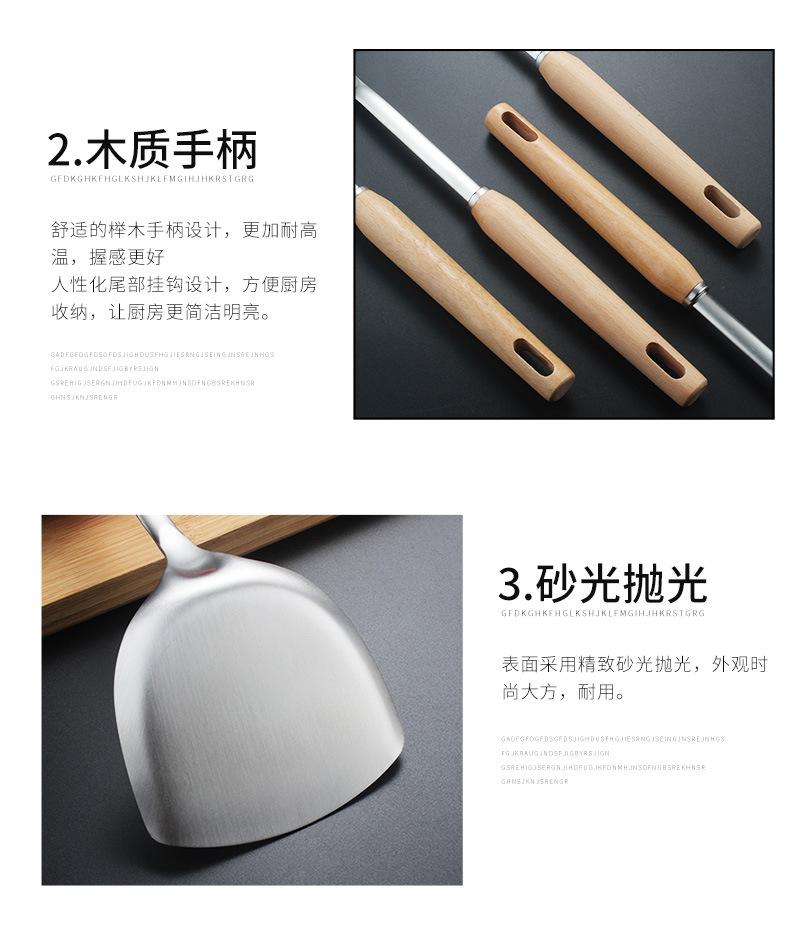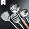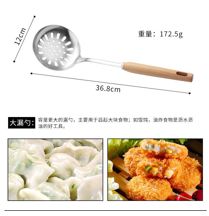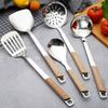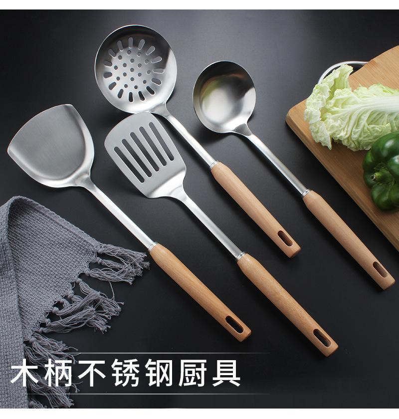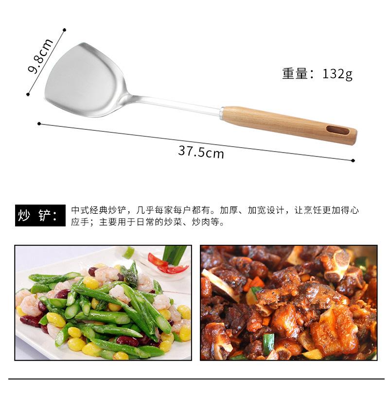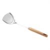 Espátula para saltear de acero inoxidable con mango de madera de estilo japonés, cuchara para sopa, cuchara para freír, pala para freír, utensilios de cocina para el hogar.