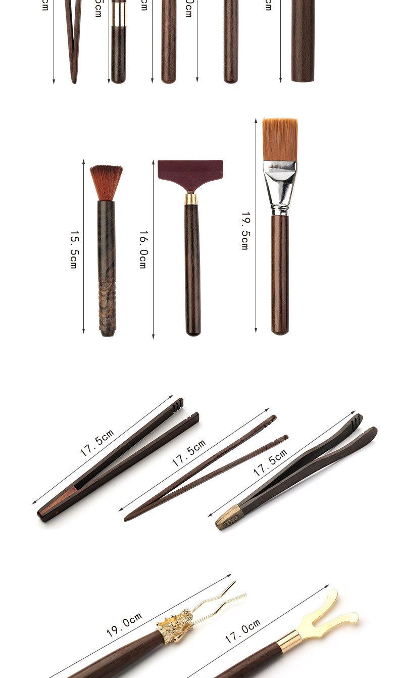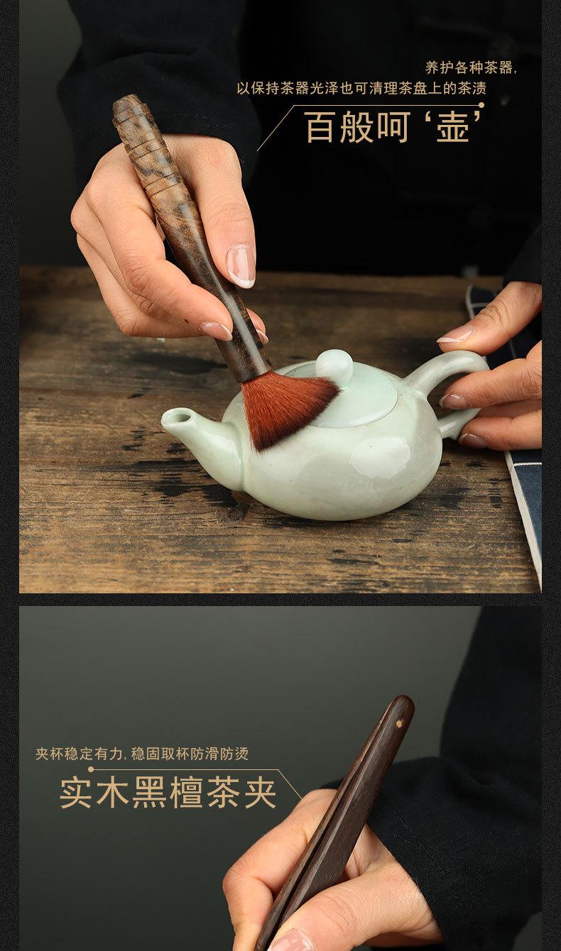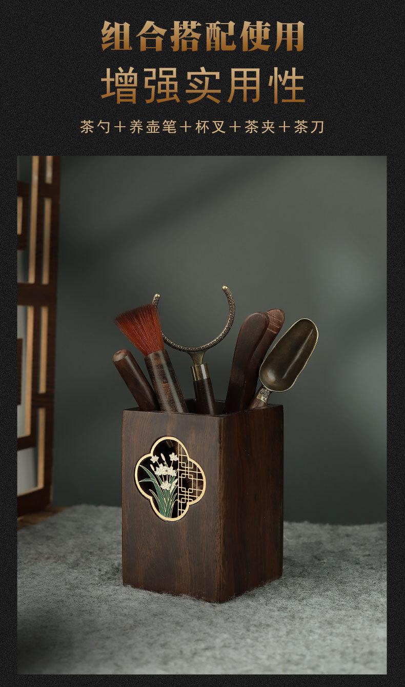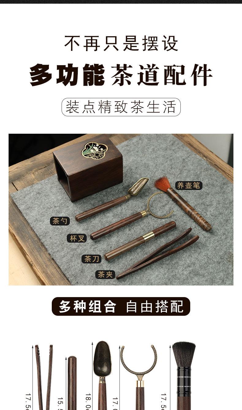 Juego de Seis Caballeros para Ceremonia del Té de Ébano Combinación Juego de Té Kung Fu Accesorios para el Té Cubo para Té Pinzas para Té Cuchara para Té Aguja para Té Venta al por Mayor