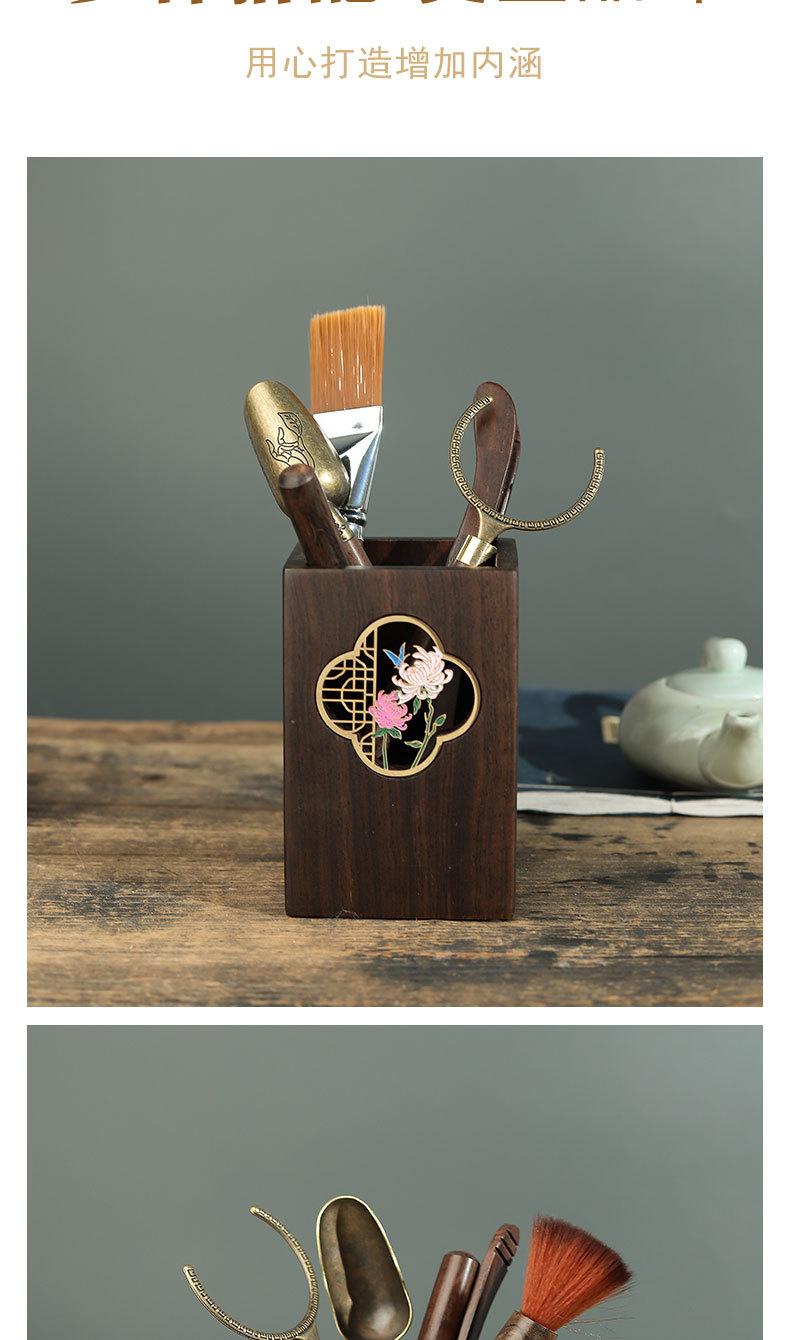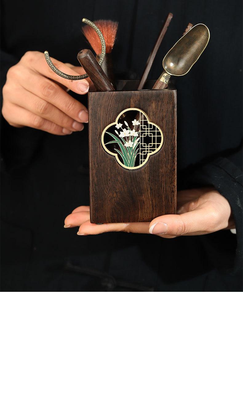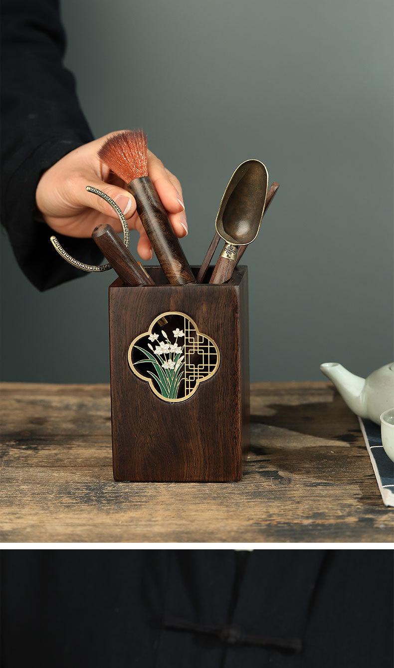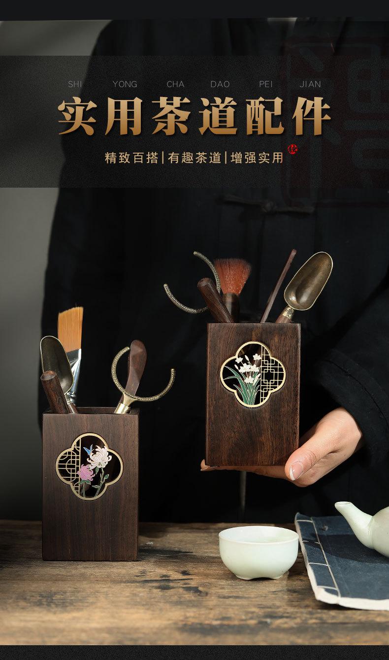 Juego de Seis Caballeros para Ceremonia del Té de Ébano Combinación Juego de Té Kung Fu Accesorios para el Té Cubo para Té Pinzas para Té Cuchara para Té Aguja para Té Venta al por Mayor
