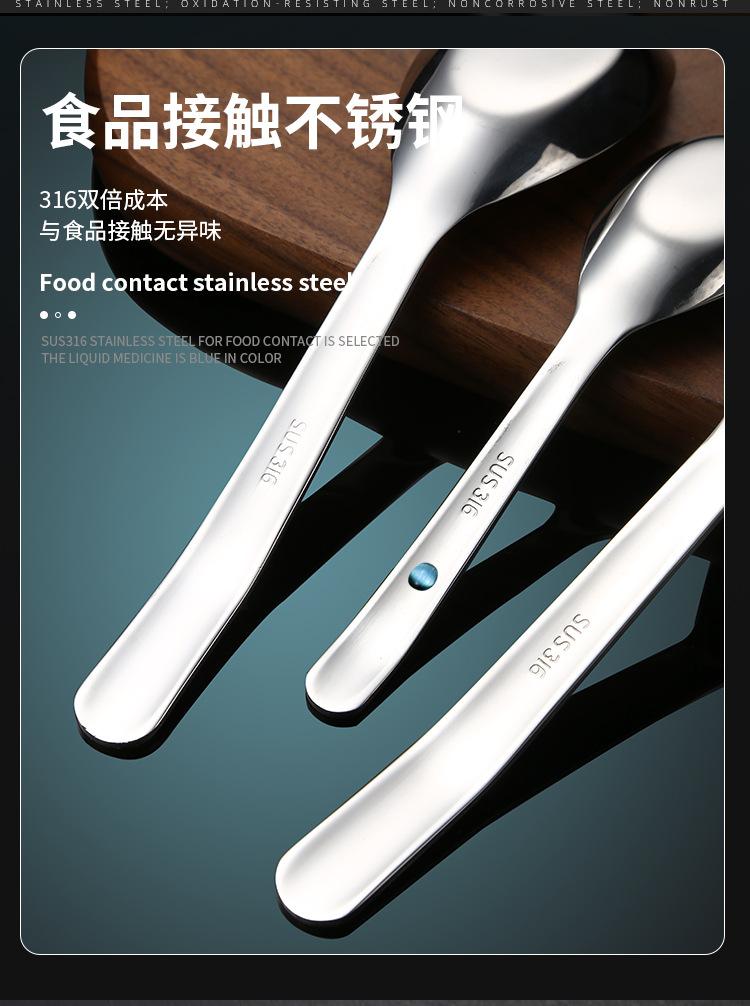 Cuchara de acero inoxidable Jieyang 316, cuchara gruesa de alto valor de color, cuchara de comedor para el hogar, cuchara brillante para fideos, vajilla para niños