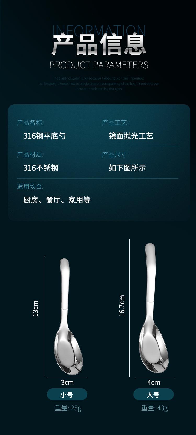 316 Stainless Steel Flat Bottom Spoon (Large), 316 Stainless Steel Flat Bottom Spoon (small size)