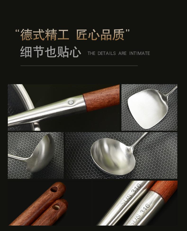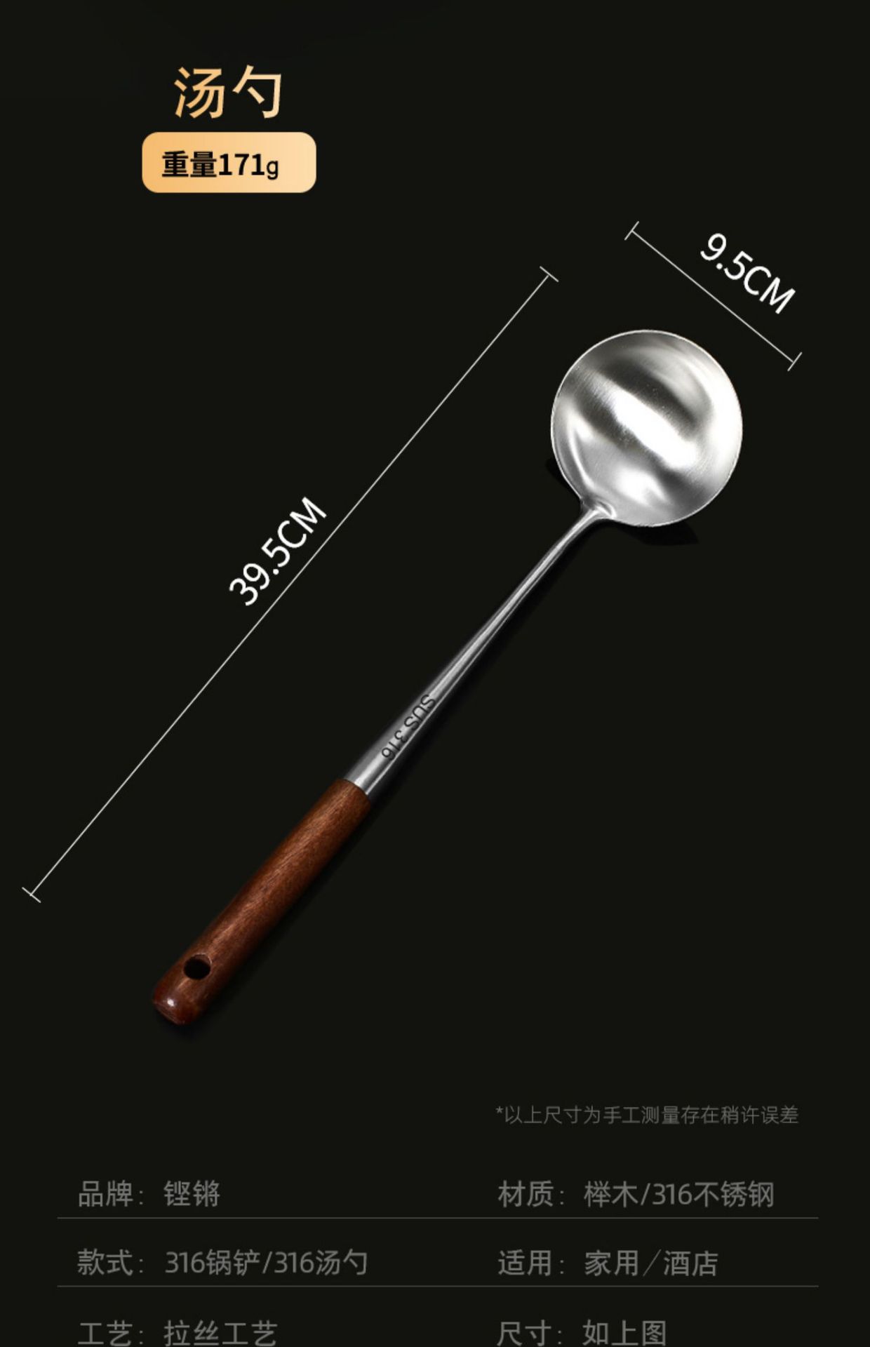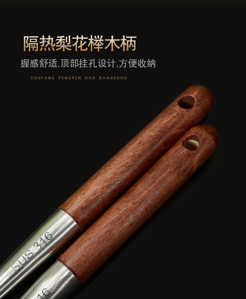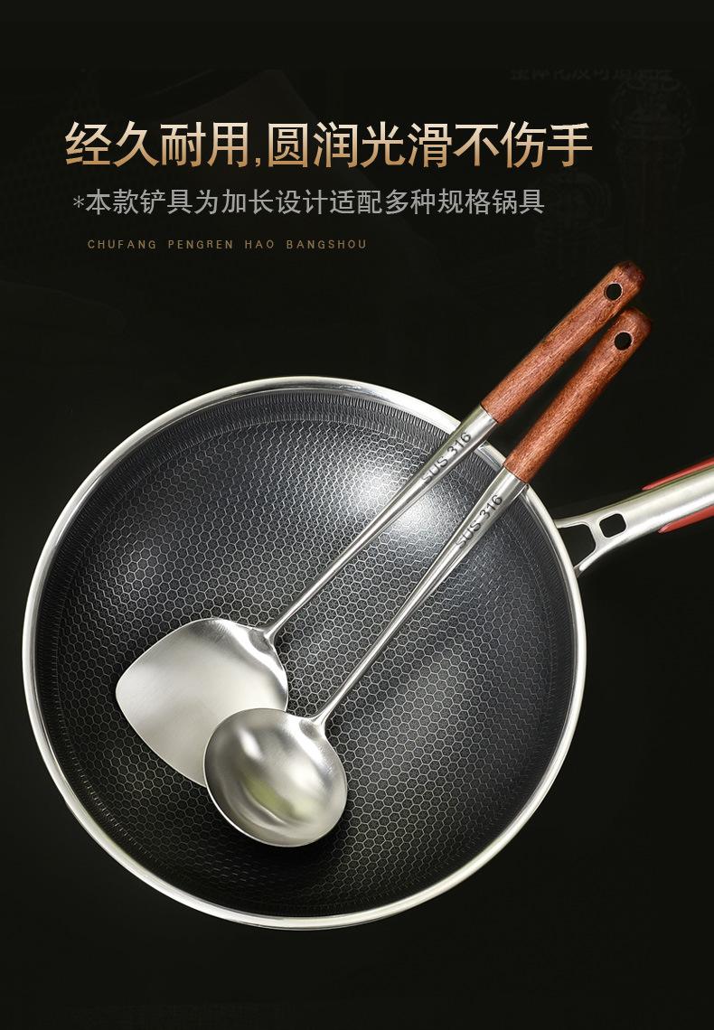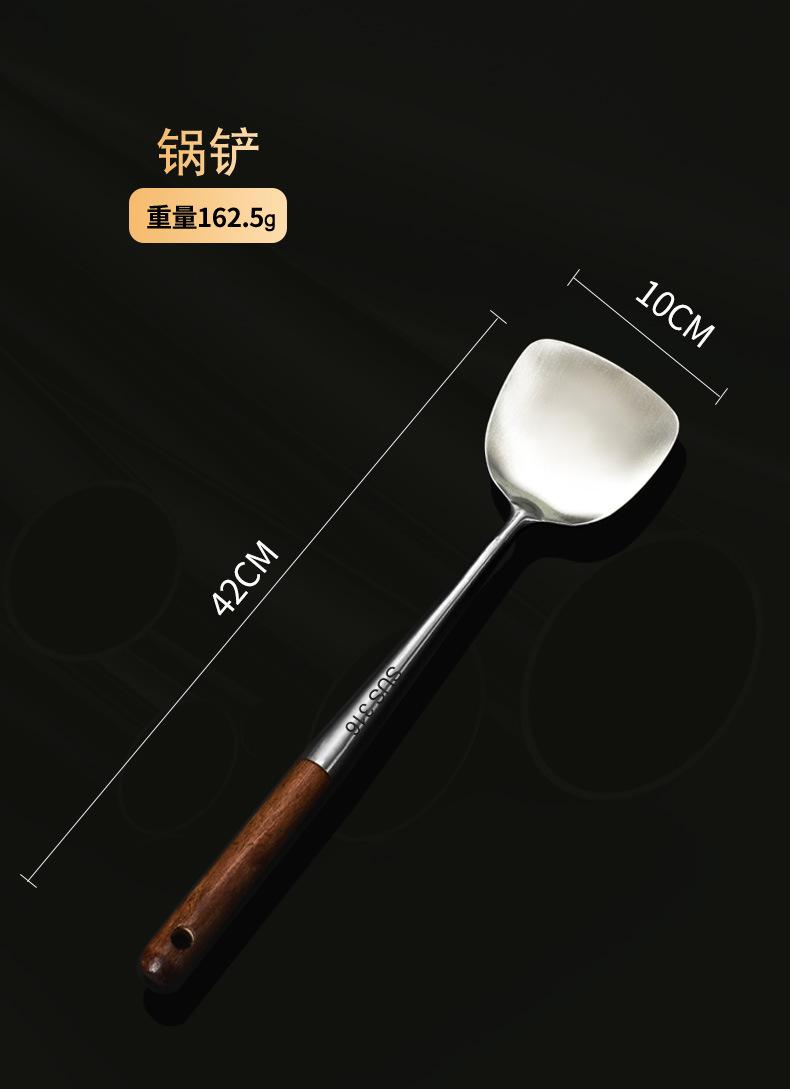 Spatula [316 steel, extended solid wood handle], Spoon [316 steel, extended solid wood handle]