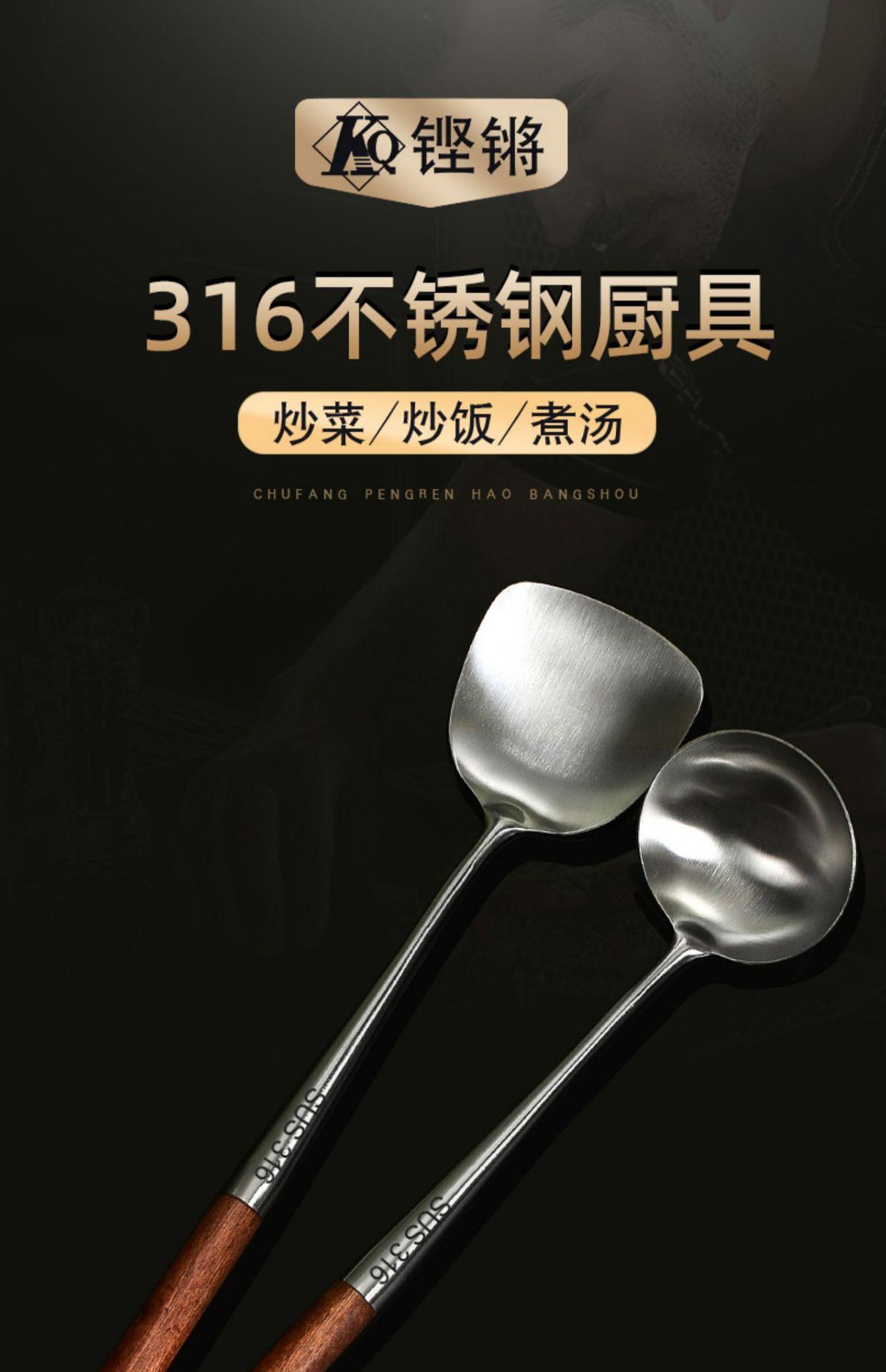 Cuchara para saltear de acero inoxidable 316 más espátula para saltear de mango largo, olla para saltear, espátula doméstica, cuchara para sopa, batería de cocina para traje de chef