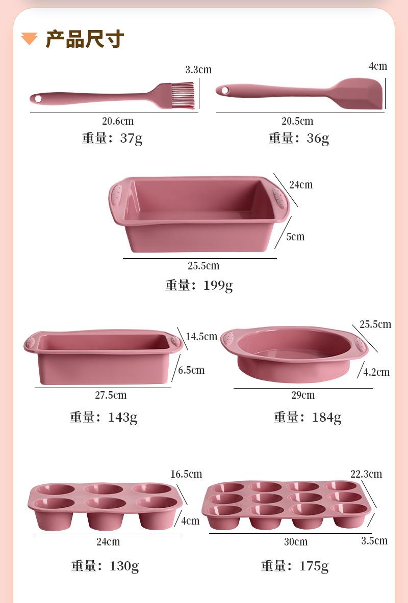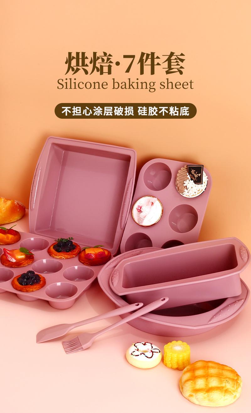 Baking 7-piece set (boxed), Silicone scraper, Silicone Brush, Toast Mold, Round Bakeware, Square Bakeware, 6 e...