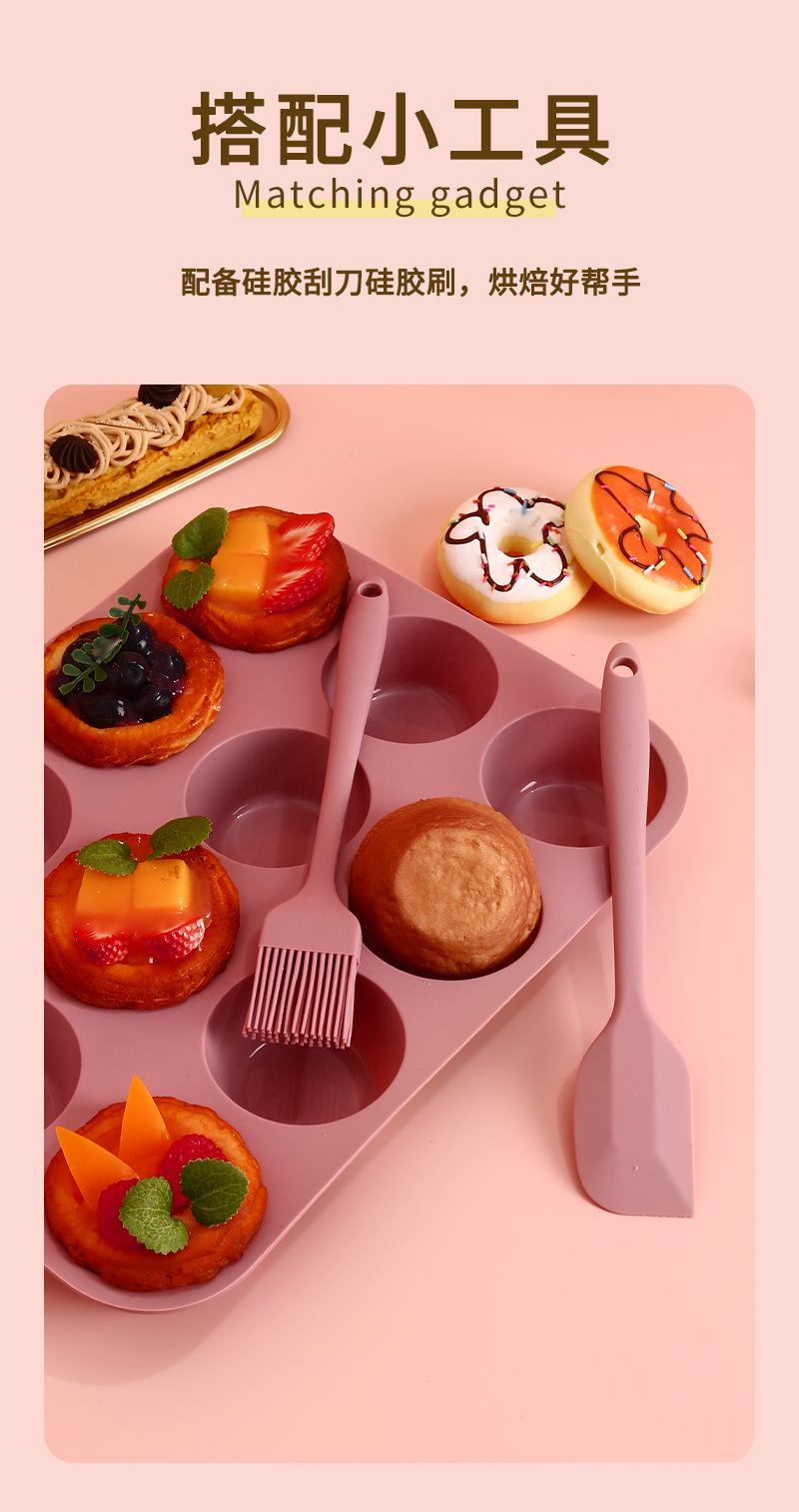 Toast mold, round baking pan, square baking pan, 12 muffin molds, 6 muffin cups, silicone brush, silicone spatula