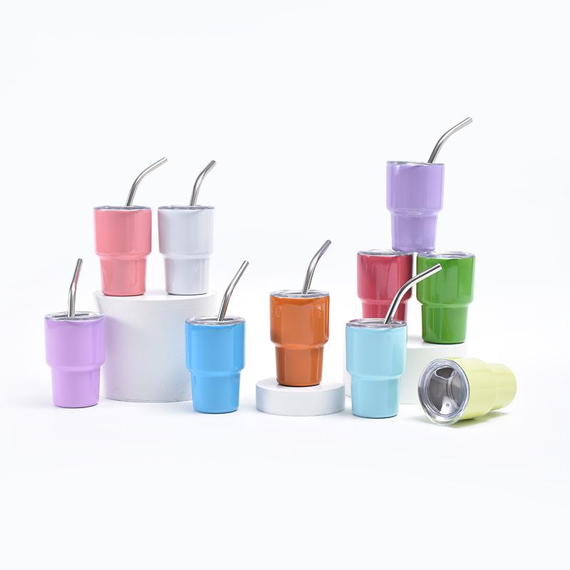 Nueva copa de vino pequeña de 2 oz transfronteriza de acero inoxidable 304, vaso para coche de doble capa de acero inoxidable para sublimación, mini vaso con pajita