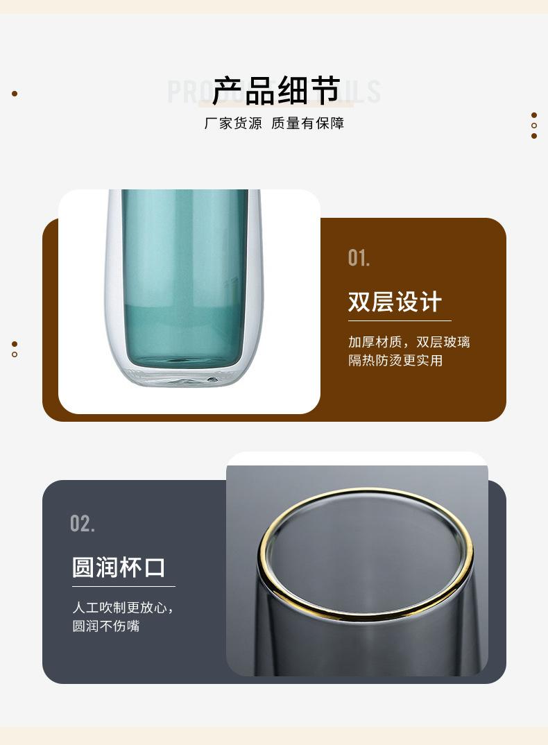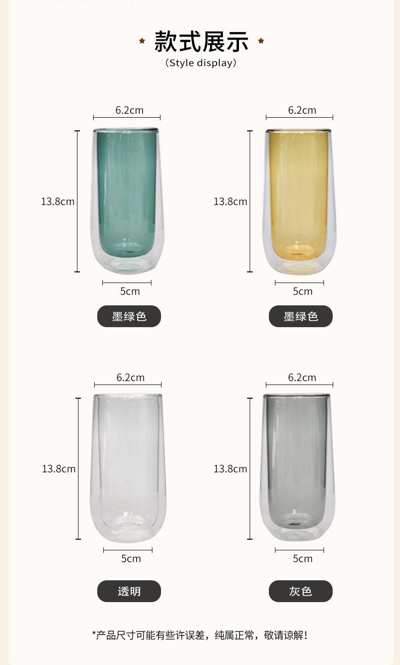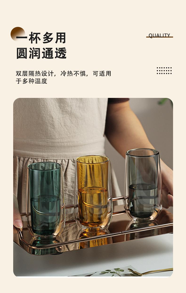 Vaso de vidrio resistente al calor de doble capa, ligero y de lujo, engrosado, con aislamiento térmico, no caliente, para el hogar, taza de té verde, taza de agua de color, adecuado para