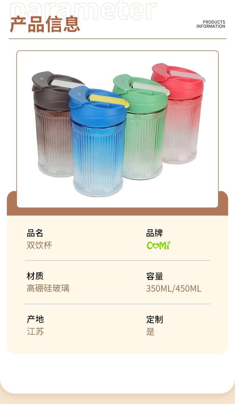 Taza doble para beber de color caramelo, de gran capacidad, portátil, con pajita, para agua, de vidrio de borosilicato, para café, color rojo, regalo de mano