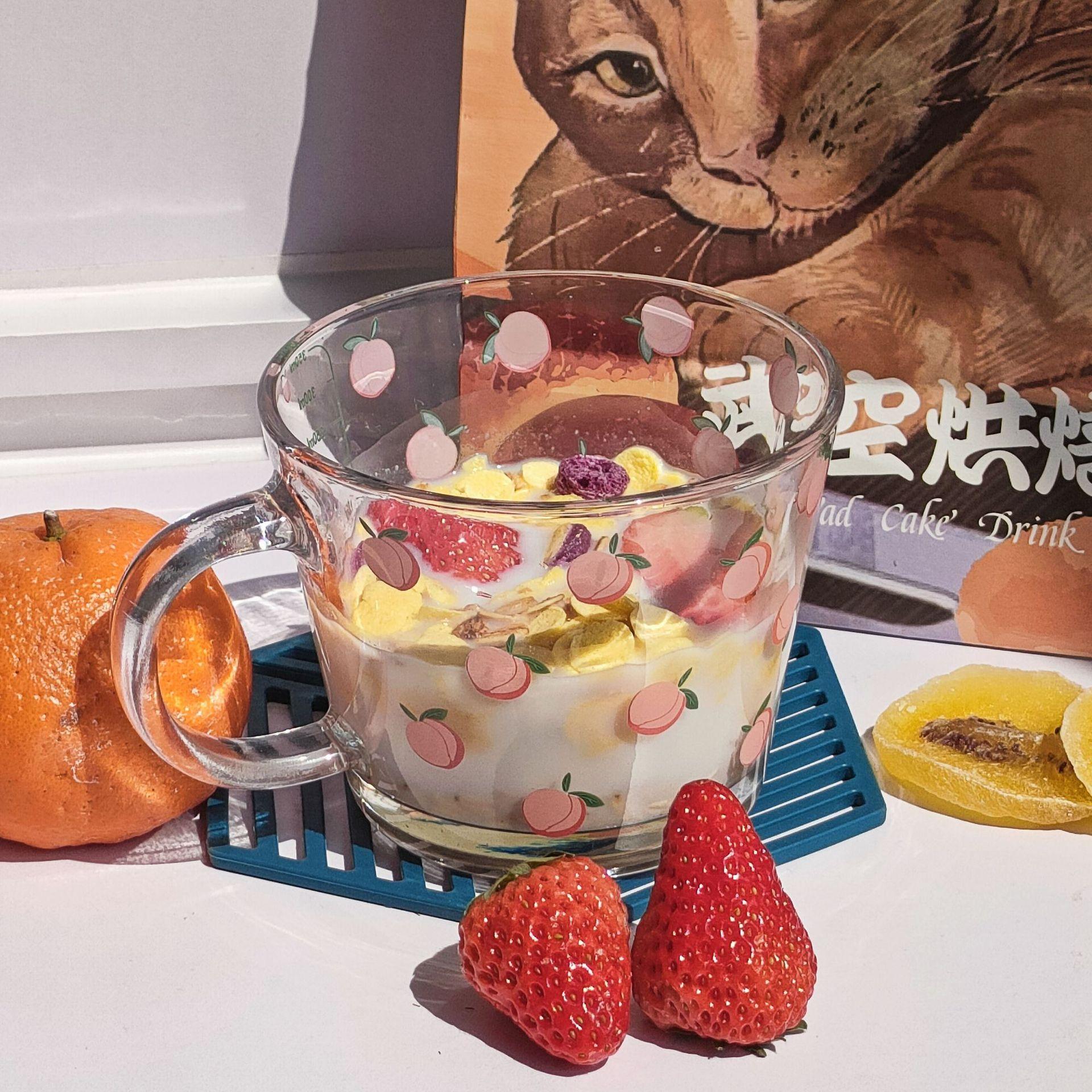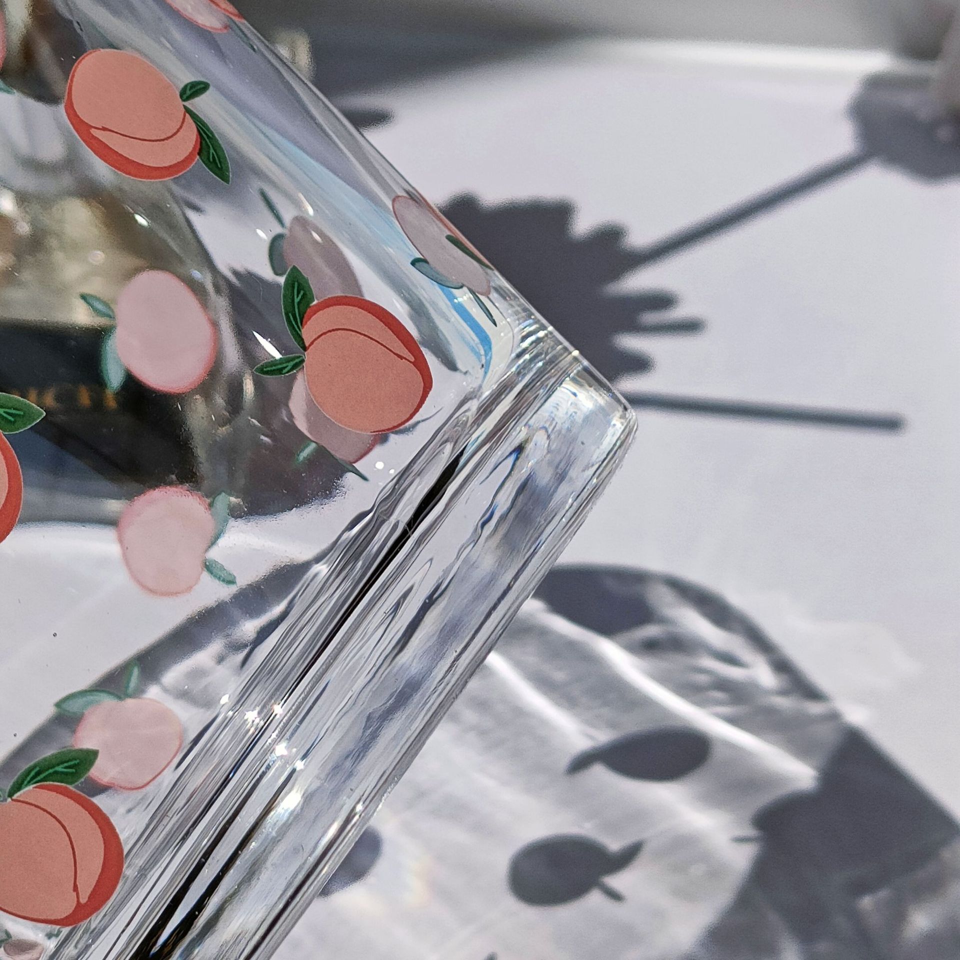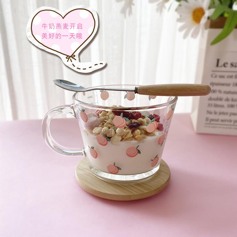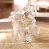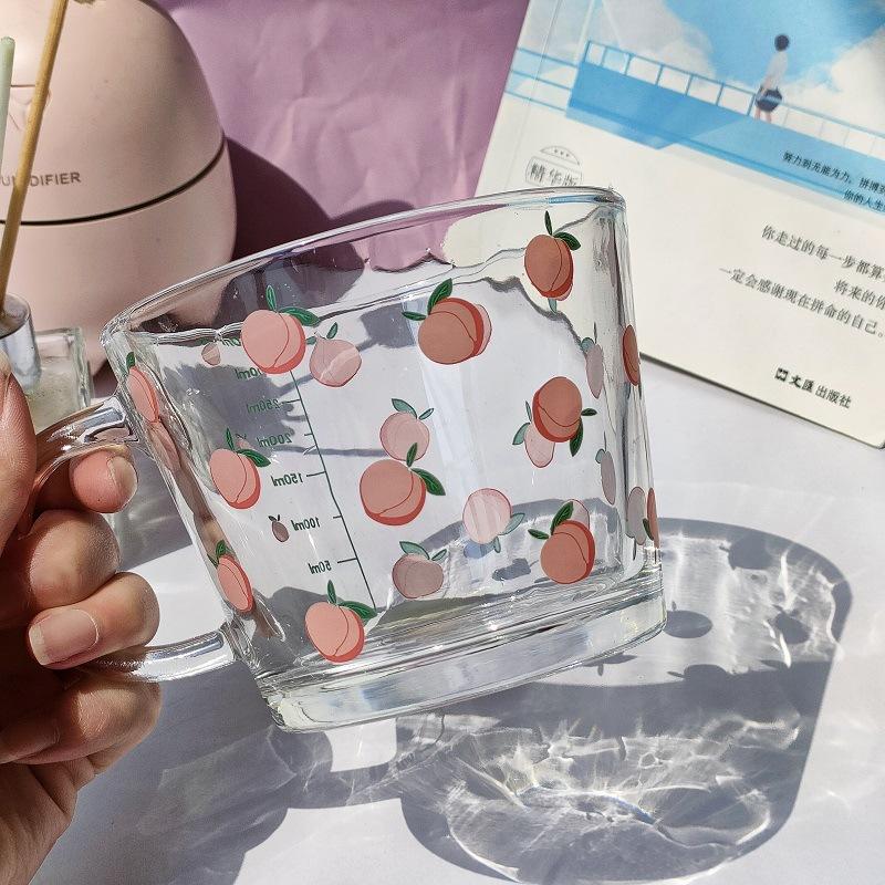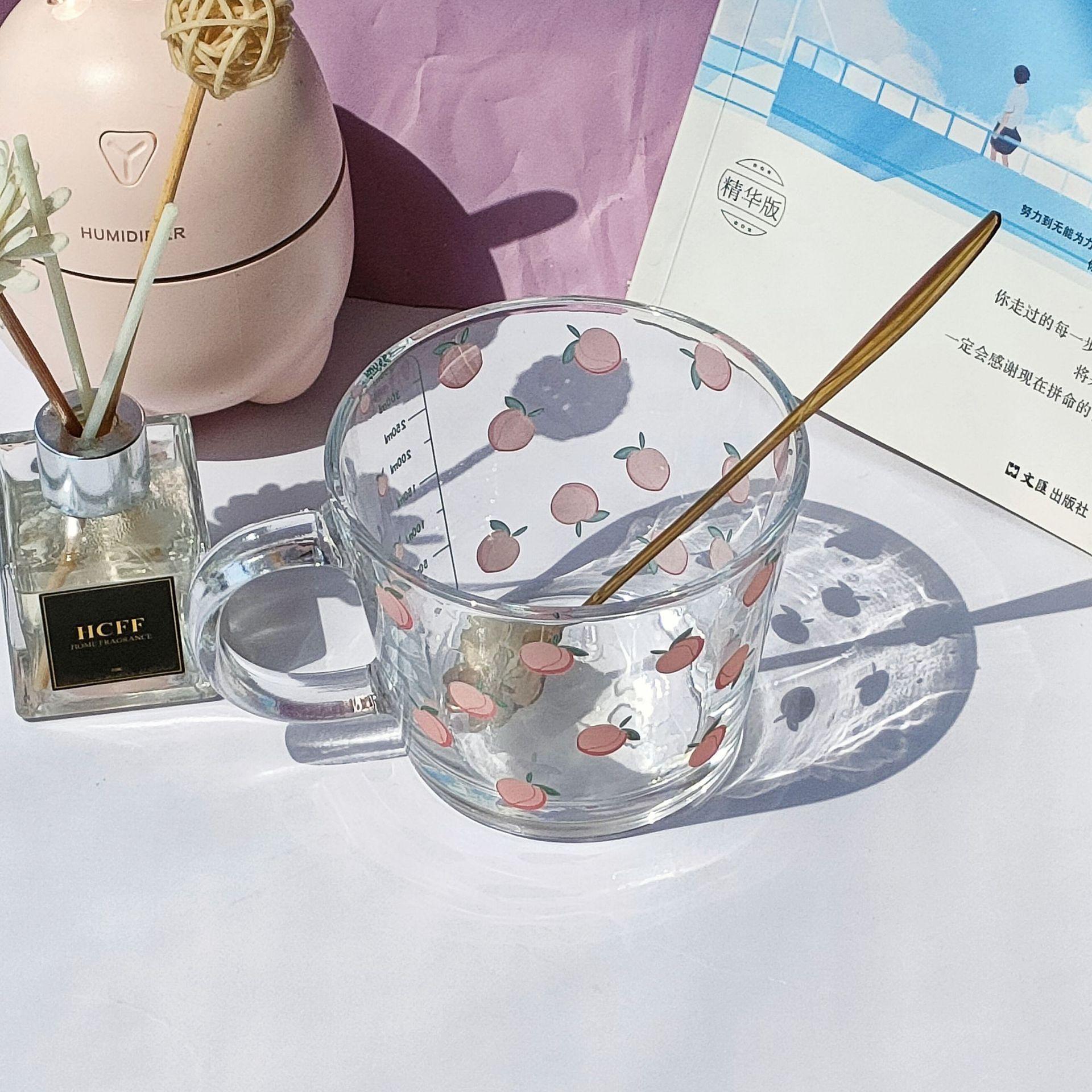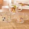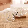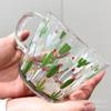 Taza de vidrio con forma de tulipán de orejas grandes con impresión estilo ins, taza con asa de gran valor, taza para jugo de verano, taza de regalo