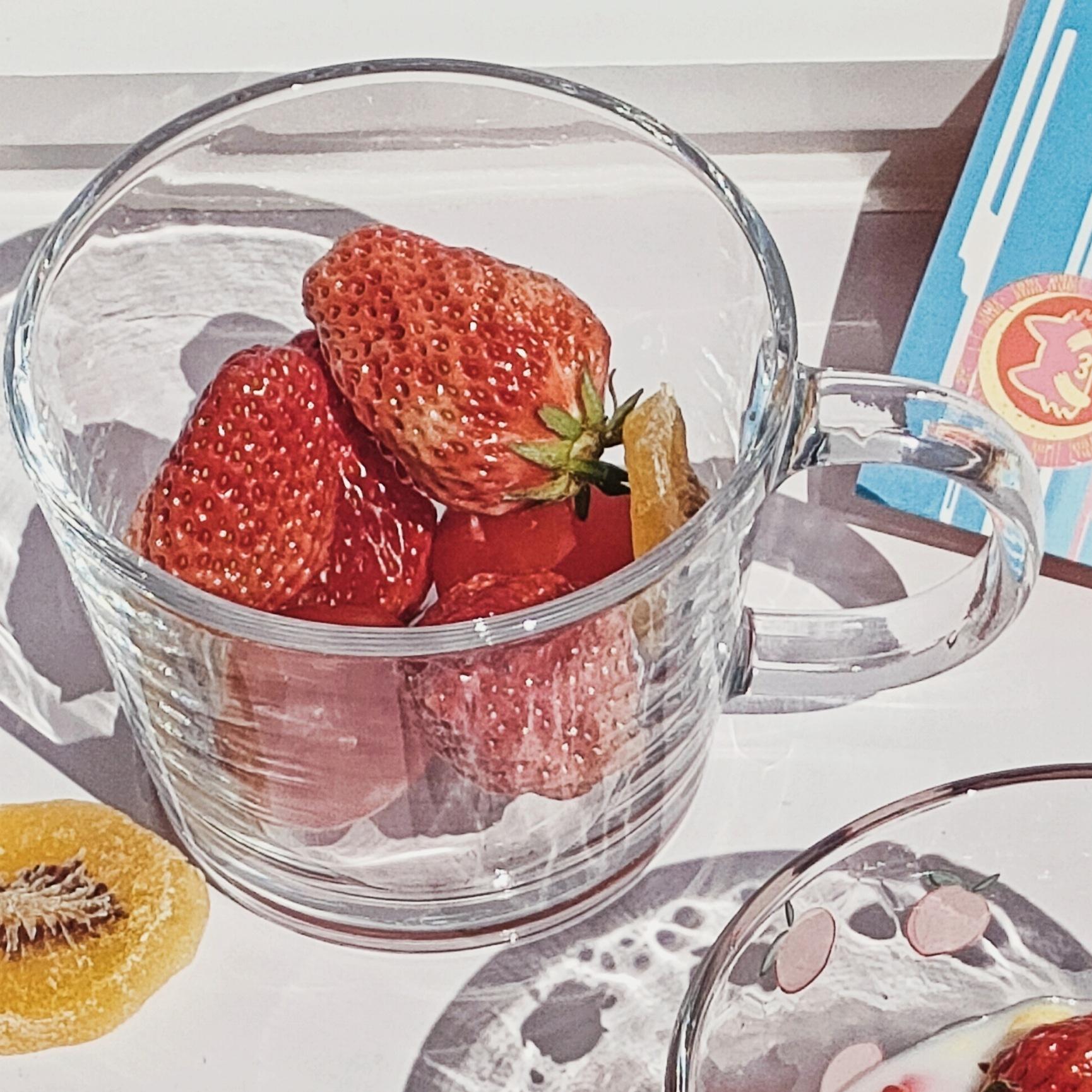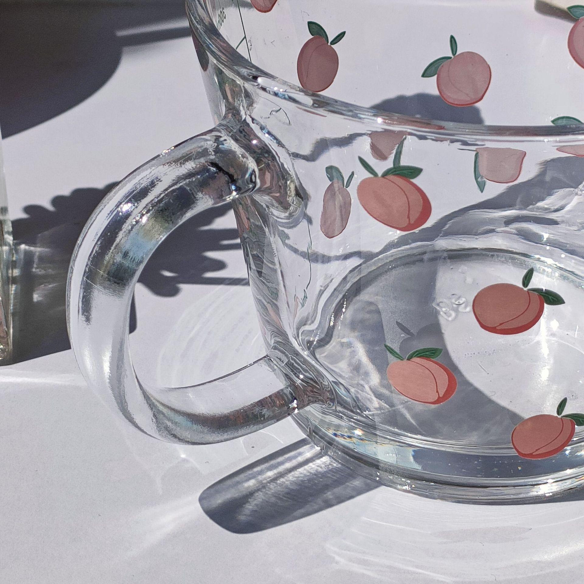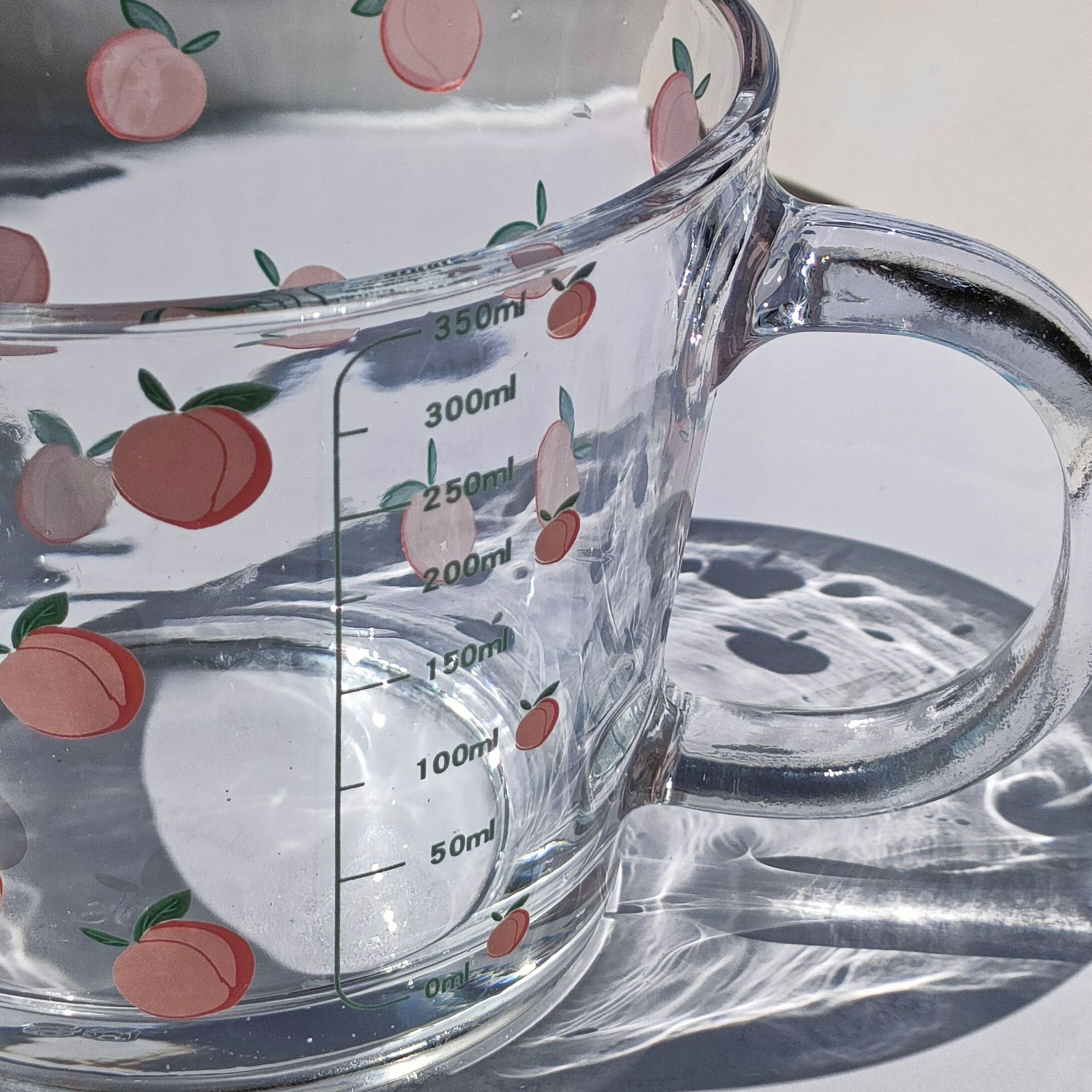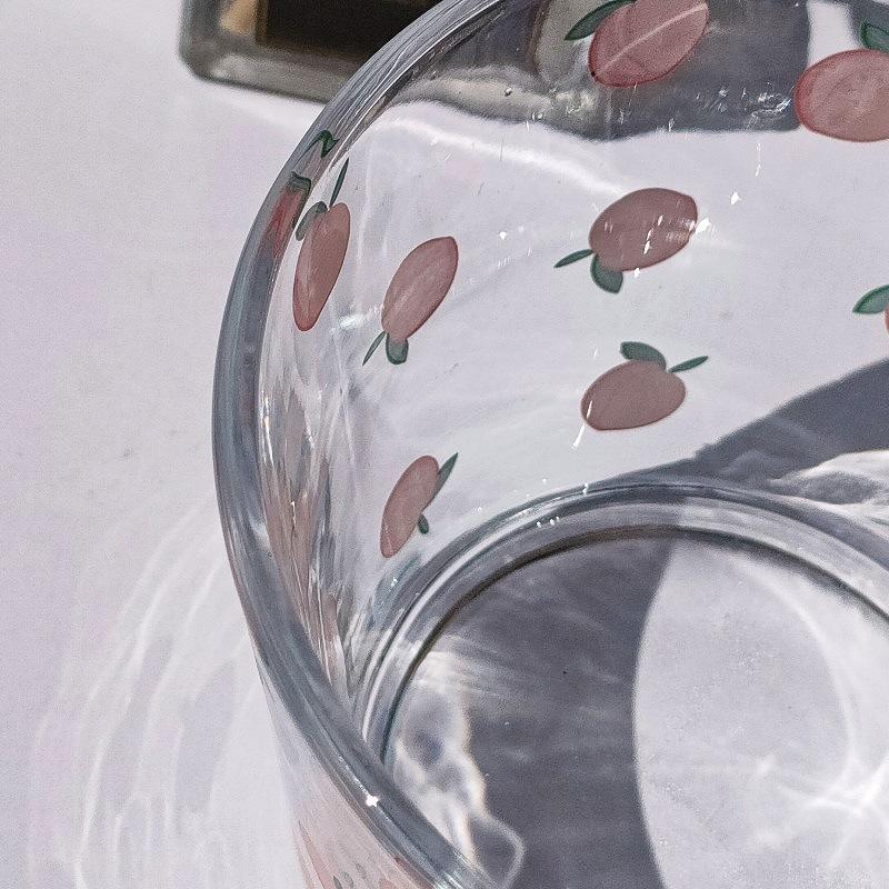 Taza de vidrio con forma de tulipán de orejas grandes con impresión estilo ins, taza con asa de gran valor, taza para jugo de verano, taza de regalo