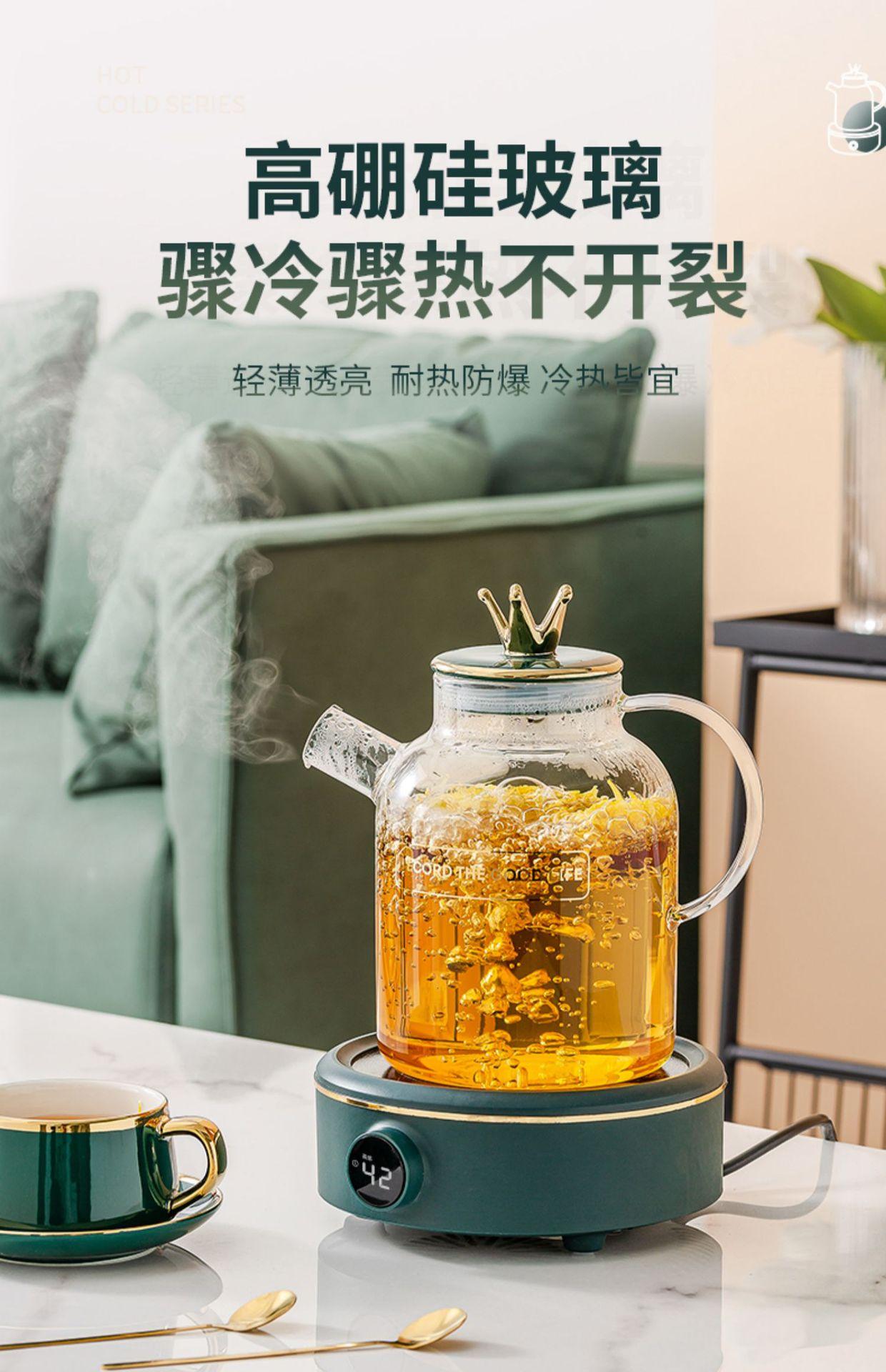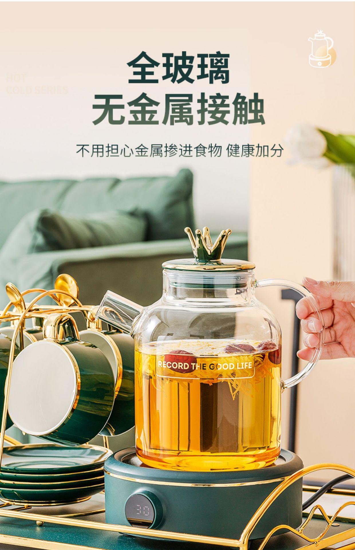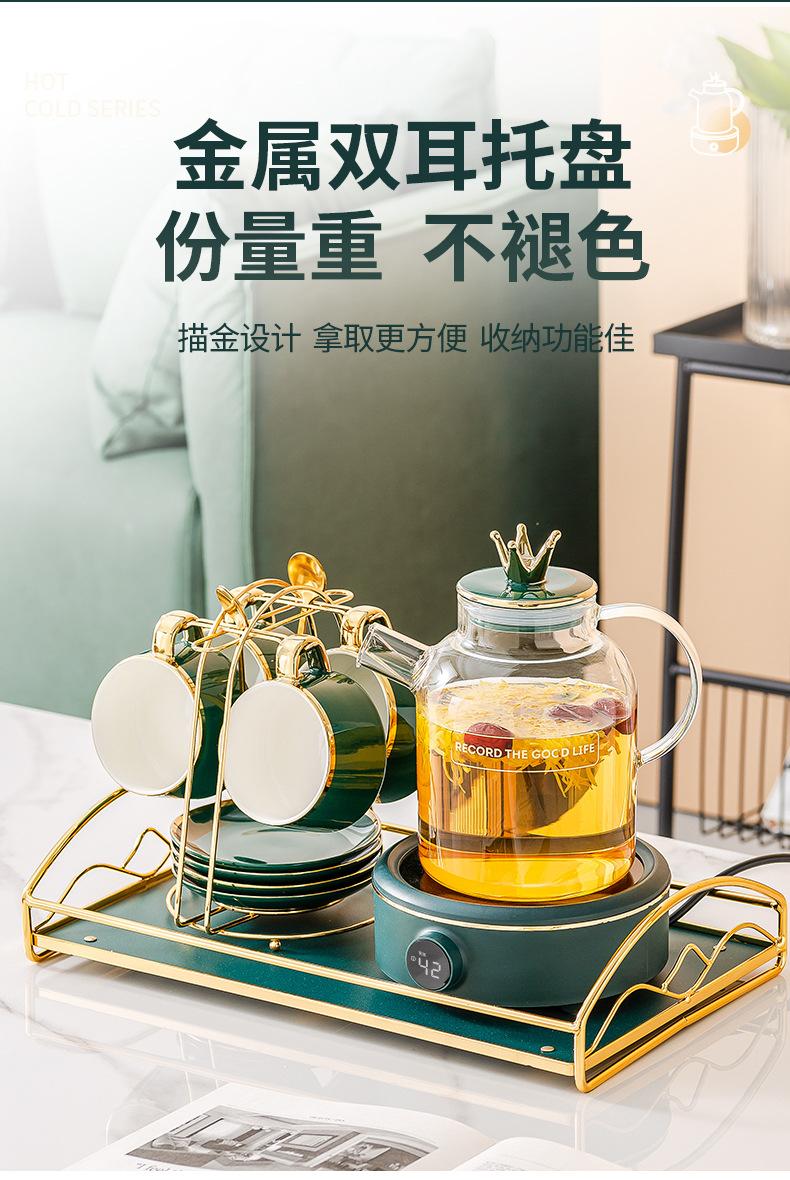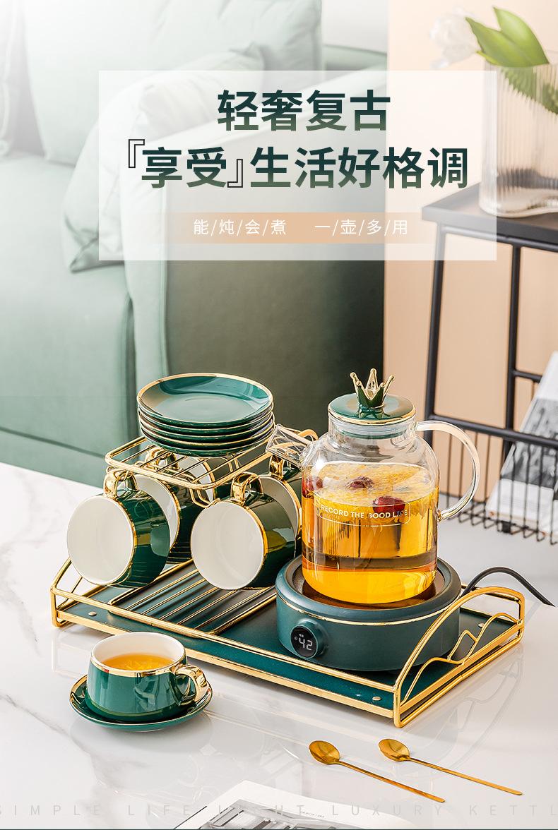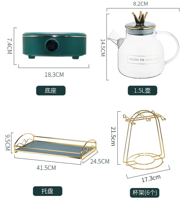 Emerald 1.8L pot + electric pottery stove +6 cups and saucers + cup holder + large tray