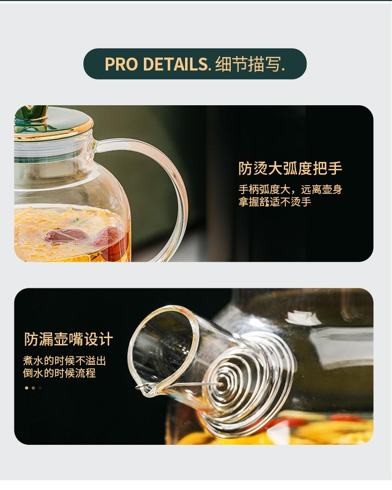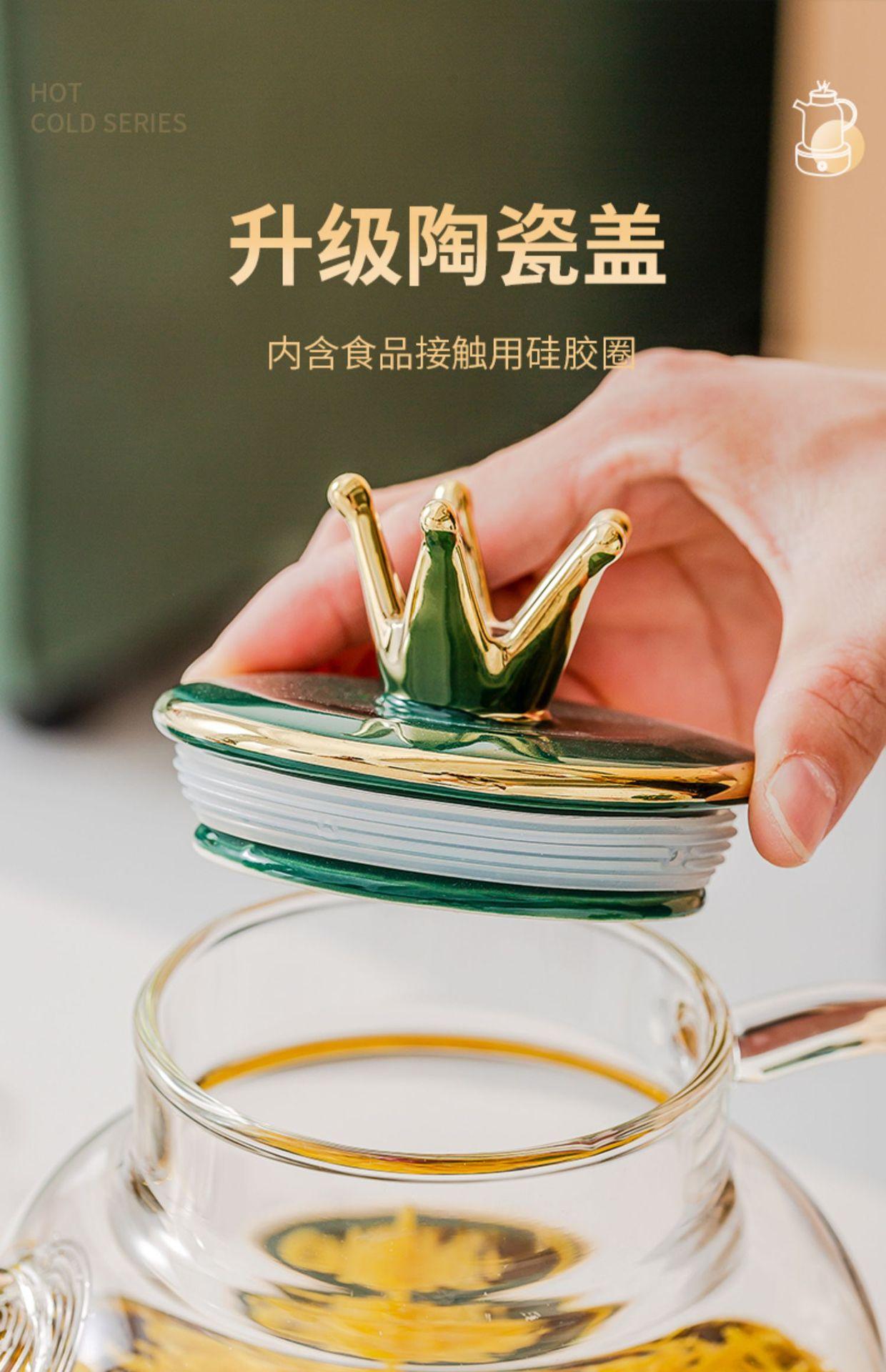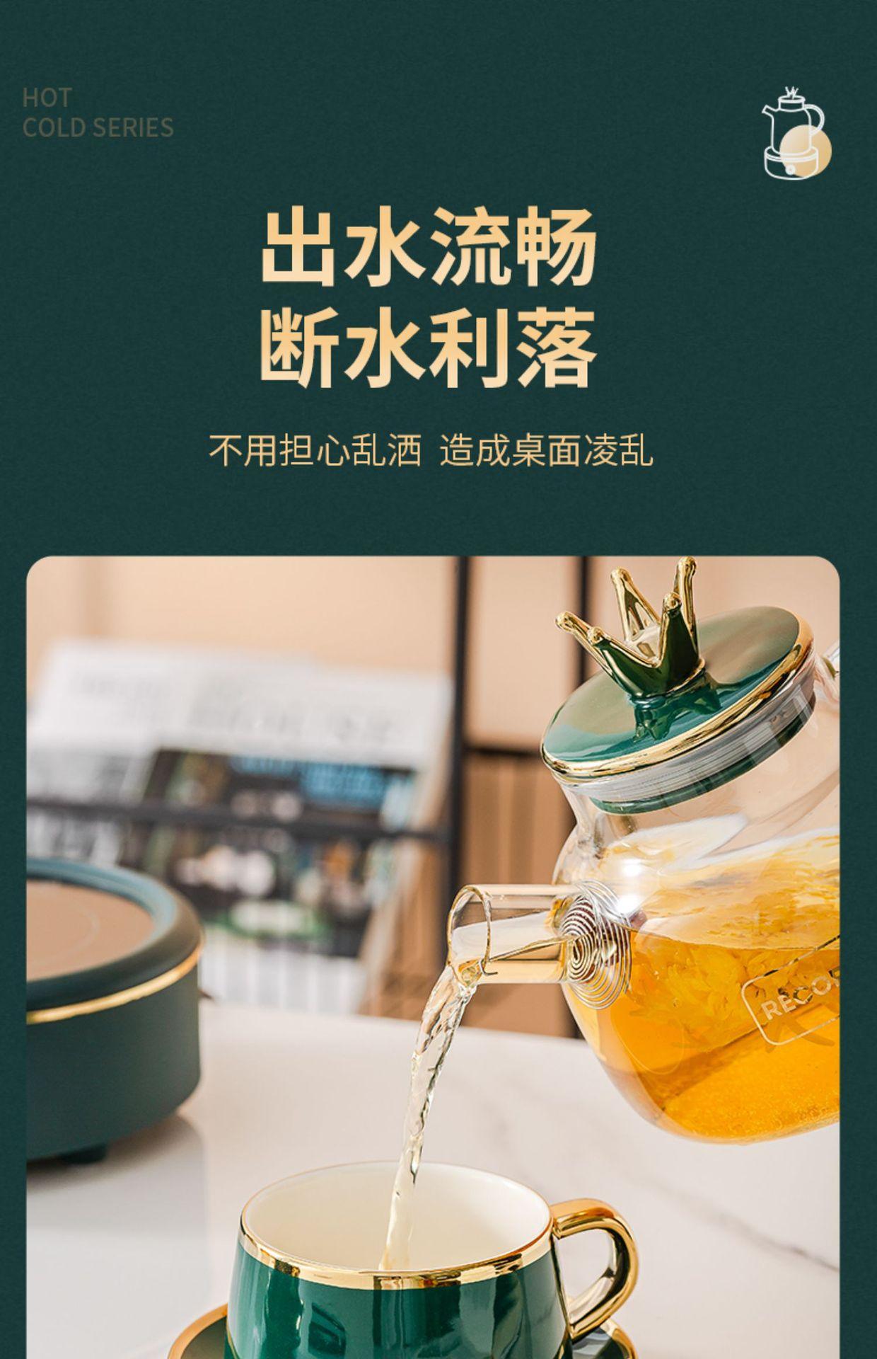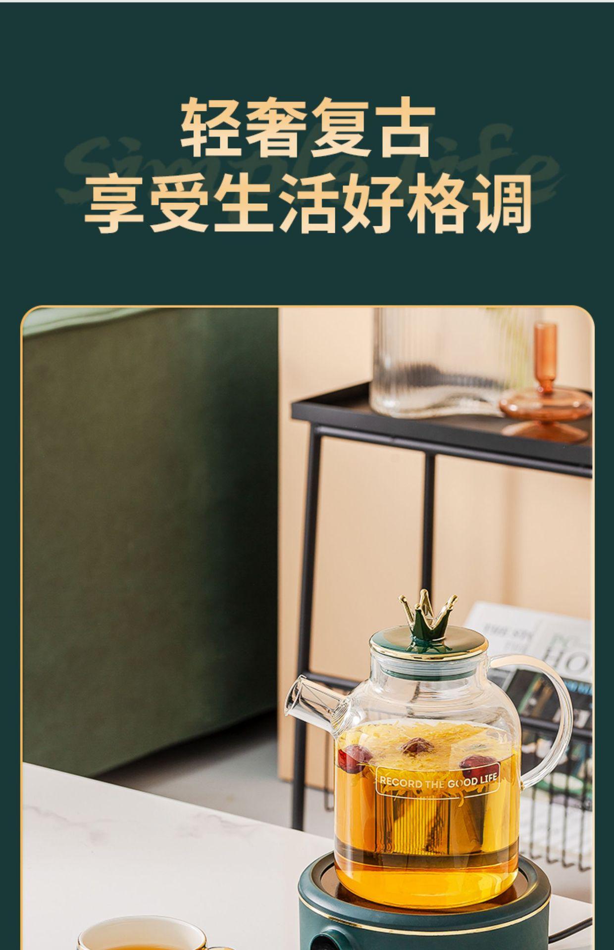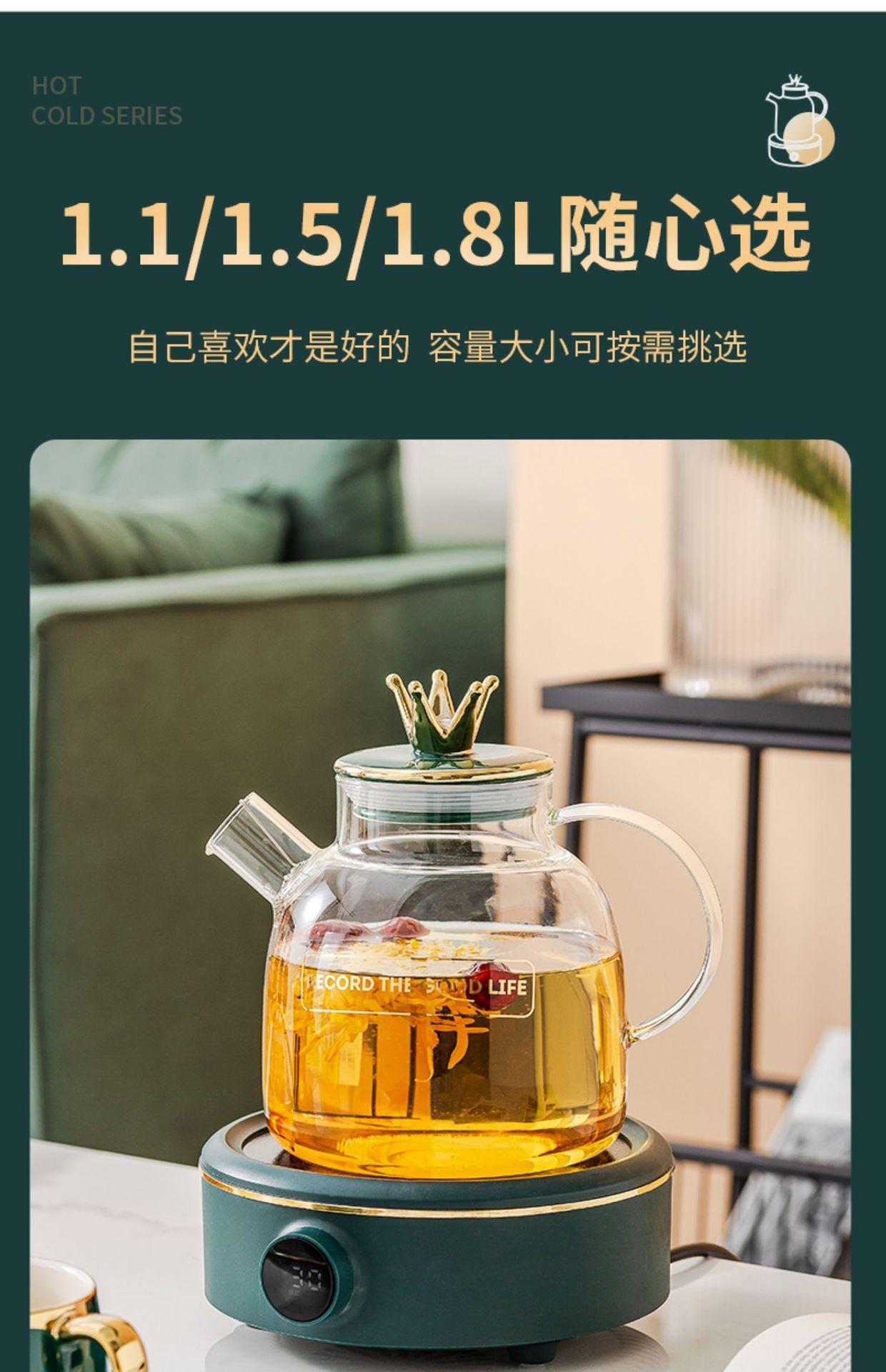 Emerald 1.8L pot + electric pottery stove +6 cups and saucers + cup holder + large tray