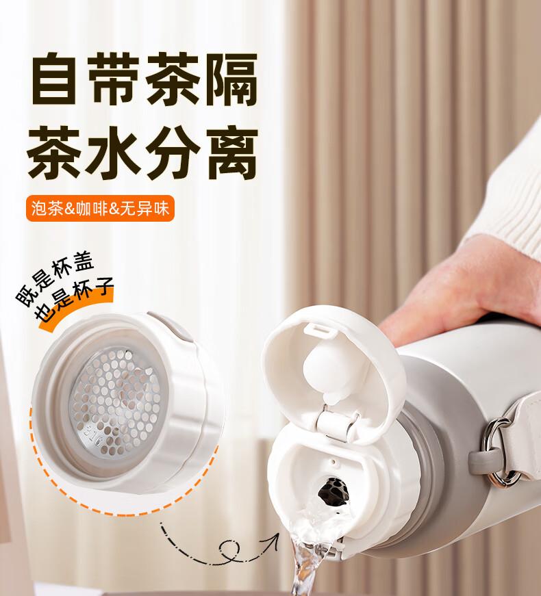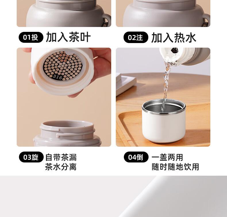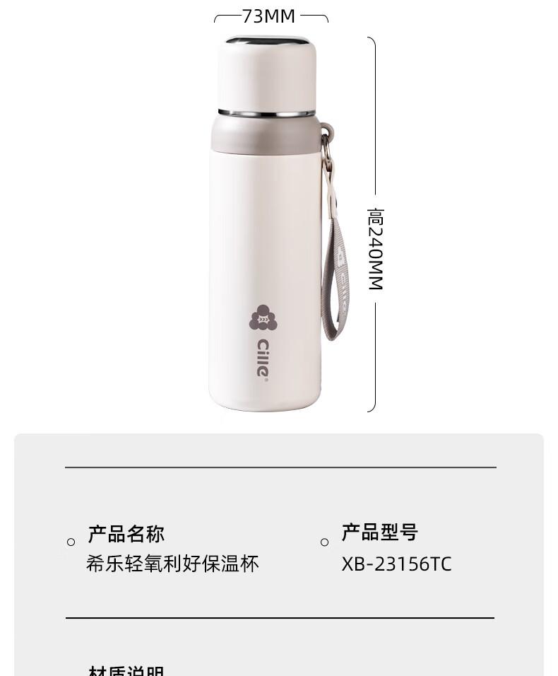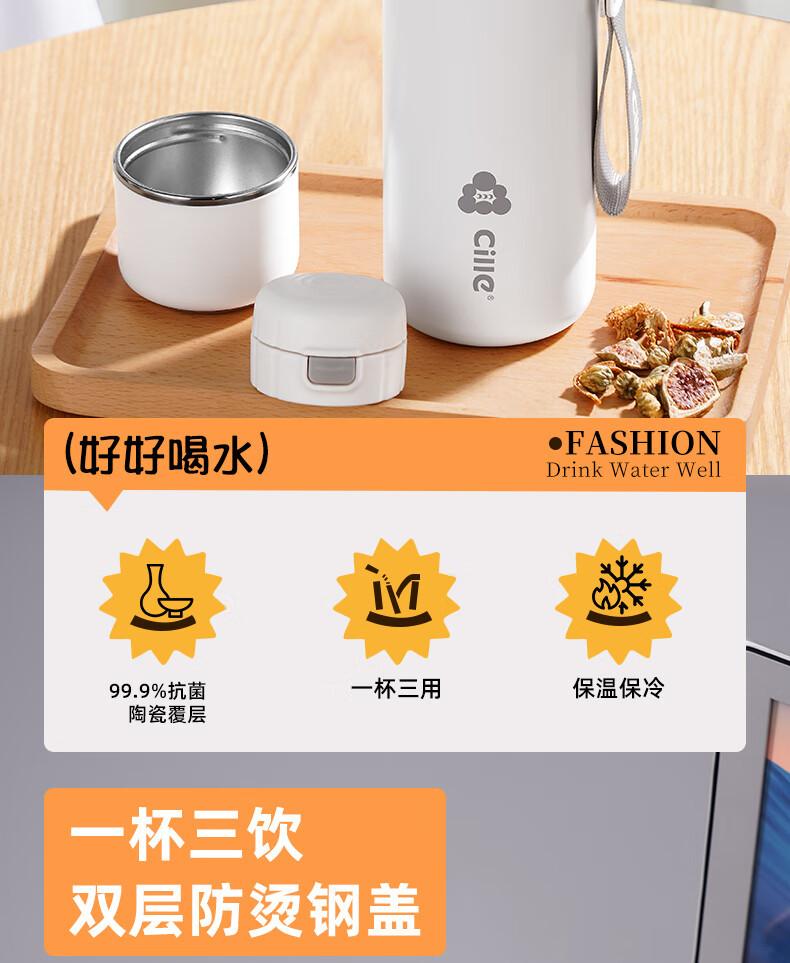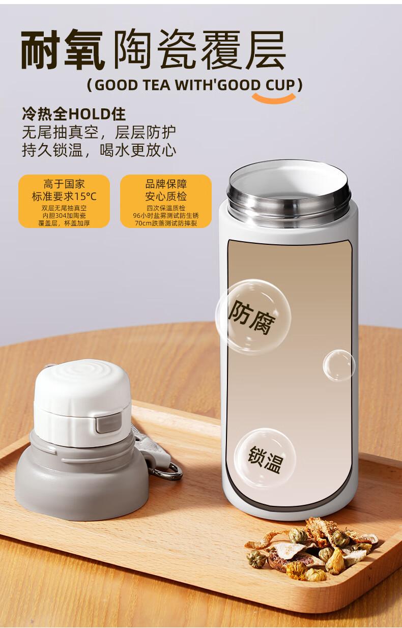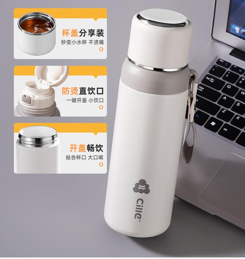 Vaso Termo Cille de Gran Capacidad para Estudiantes, Vaso Deportivo para Agua, Revestimiento Cerámico de Aspecto Sofisticado, Simple y Cálido