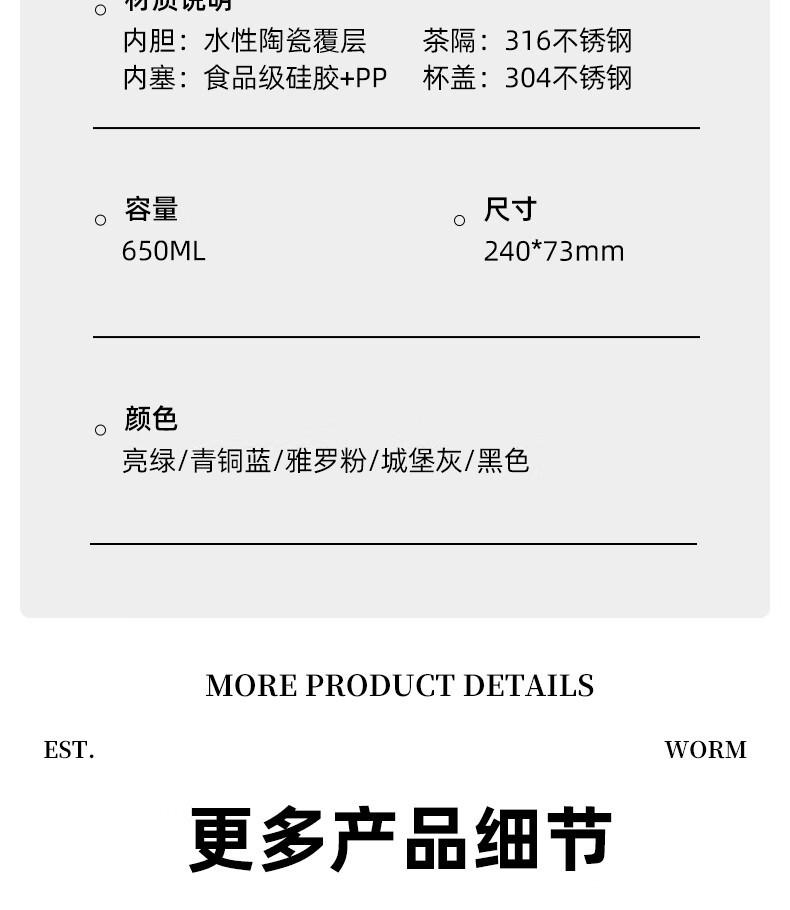 Green [304 liner/ceramic coating] 650ml, Blue [304 liner/ceramic coating] 650ml, Pink [304 liner/ceramic coati...