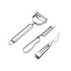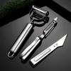 Cuchillo pelador de acero inoxidable, pelador de patatas, juego de cepillador, utensilios de cocina multifuncionales de tres piezas, cuchillo raspador de melón y fruta