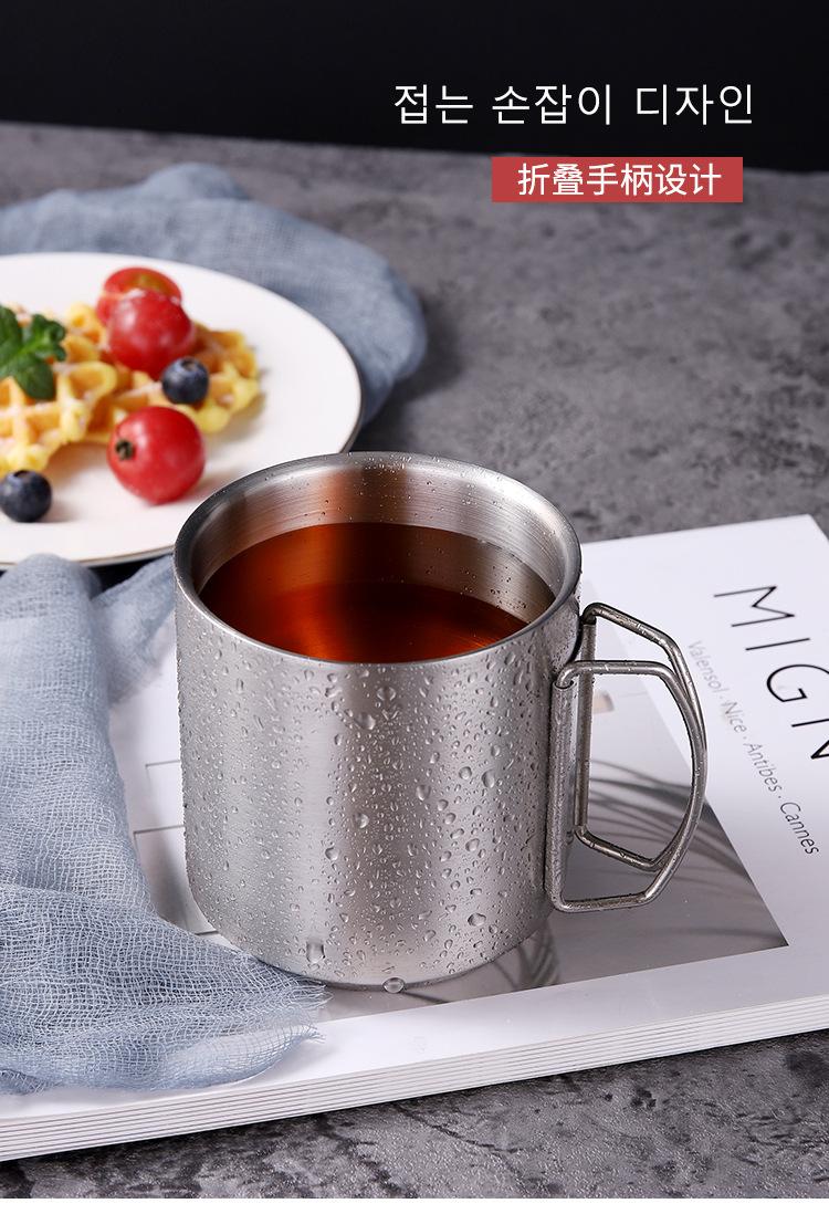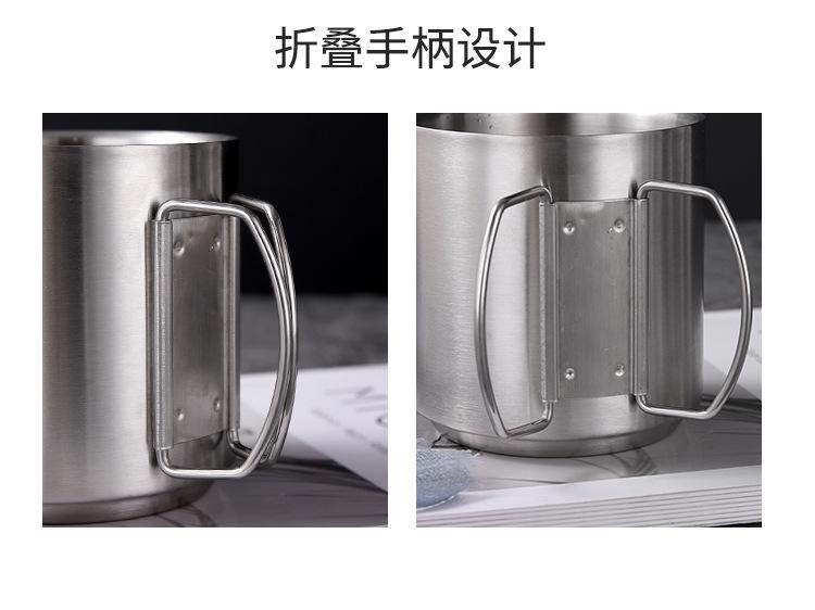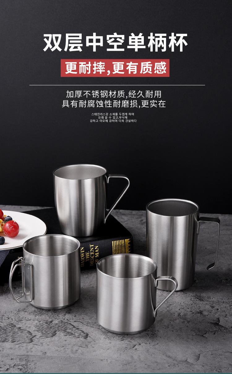 Taza de acero inoxidable 304 de doble capa con asa para exteriores, camping, picnic, taza de café, taza de cerveza de una sola capa
