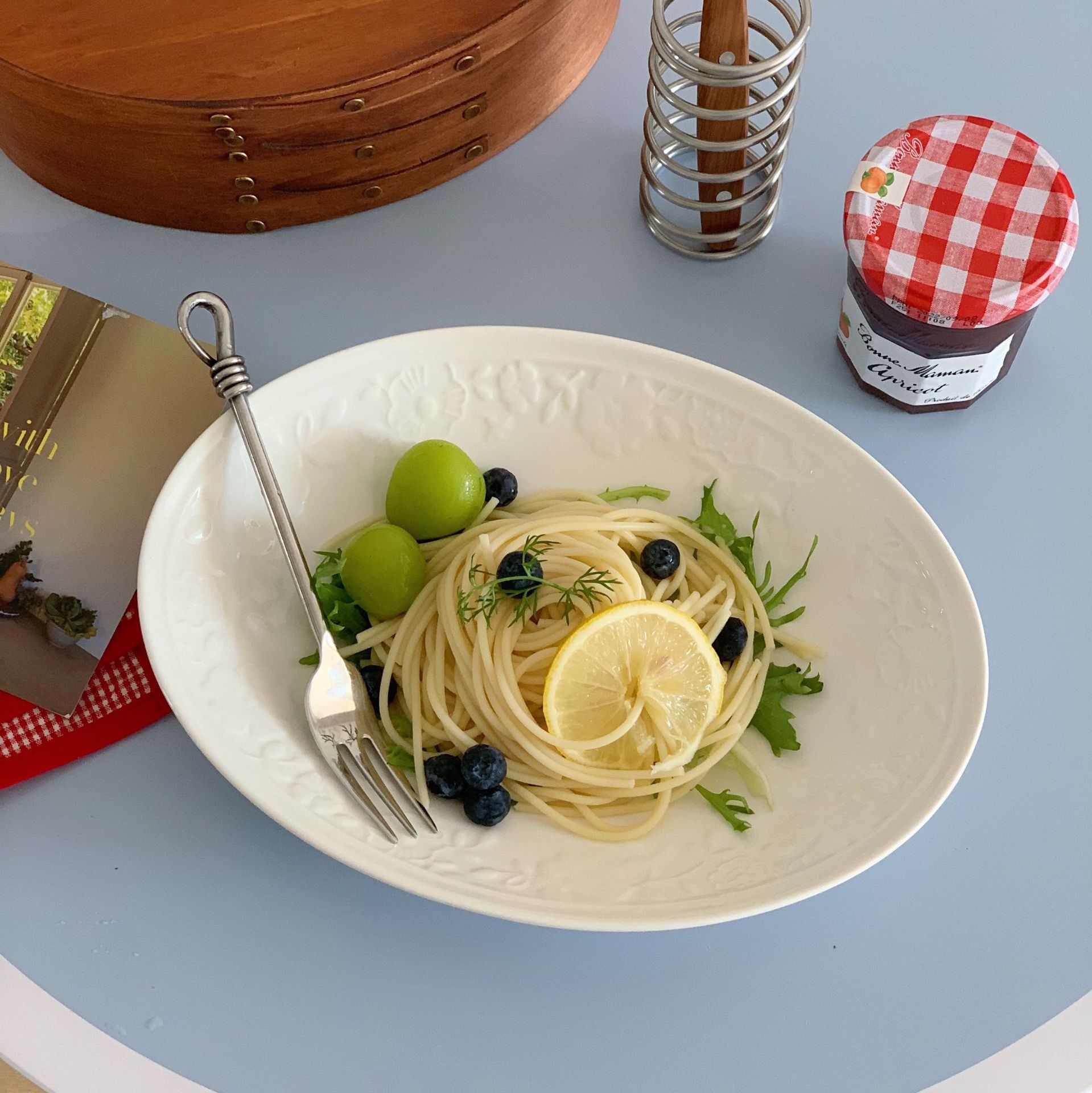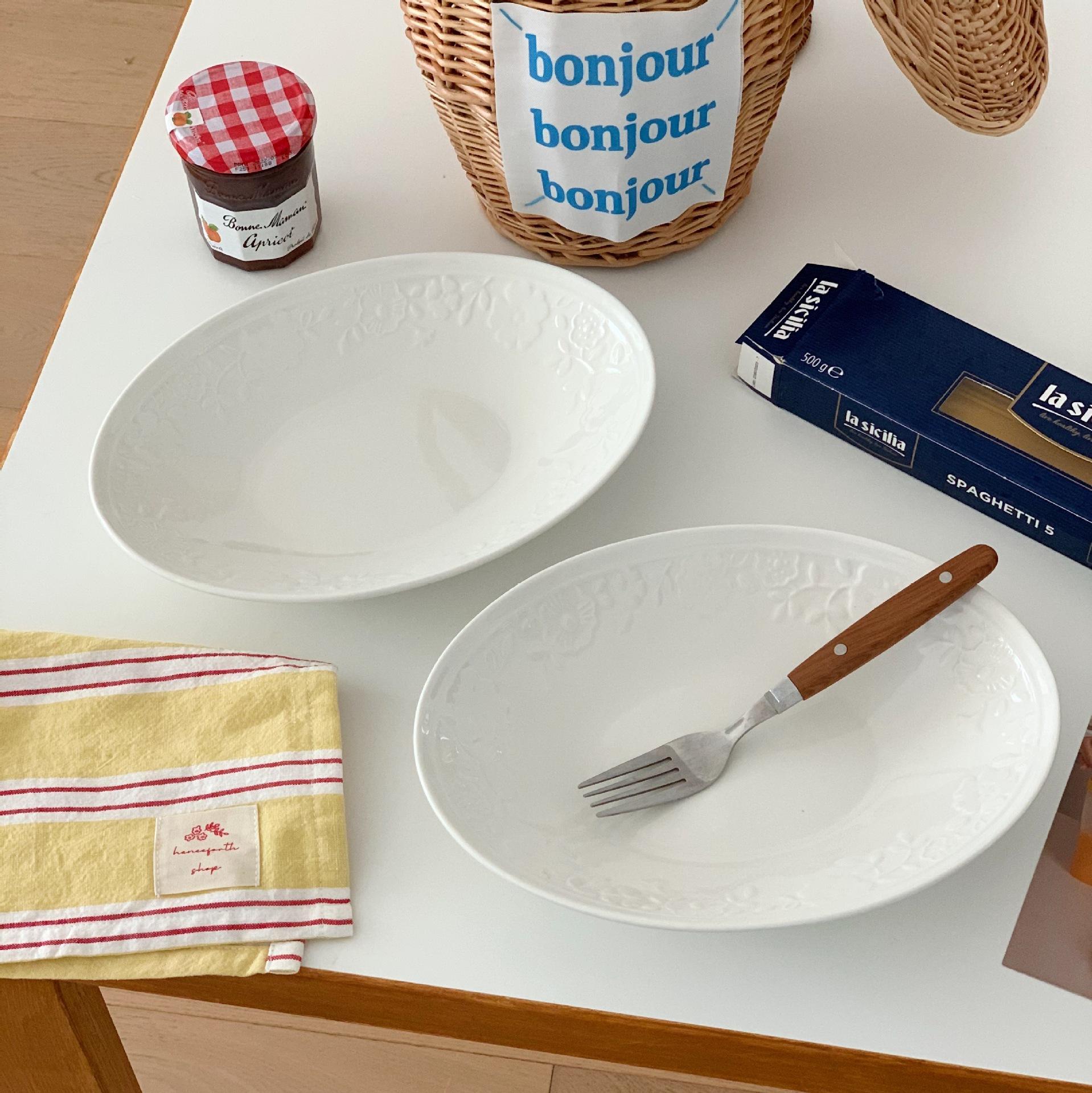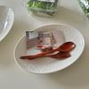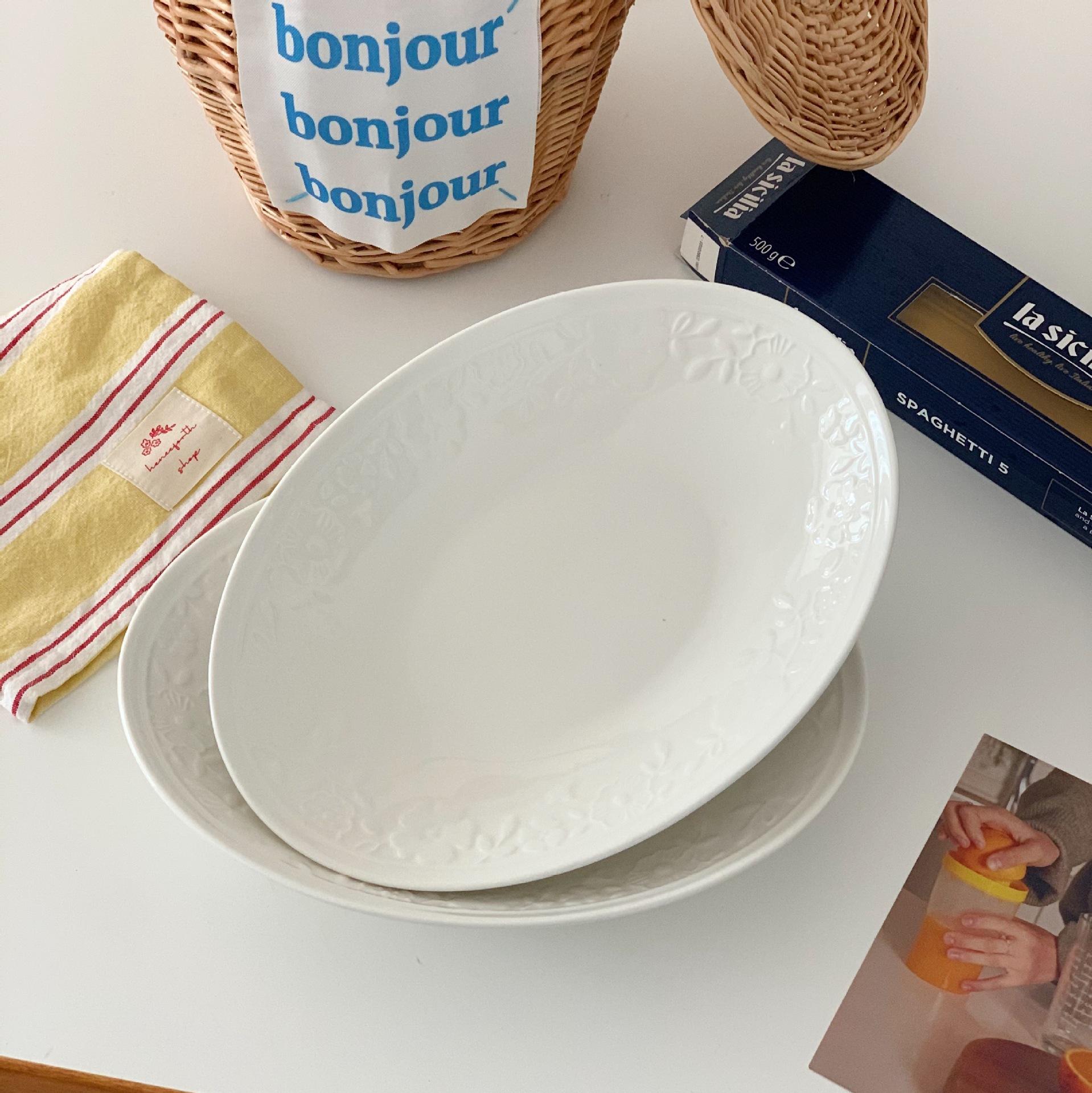 Plato Llano Ovalado Retro en Relieve Estilo Ins Cerámica Blanca Pura Plato para Pescado Plato para el Hogar Plato para Desayuno Plato para Pastel Plato