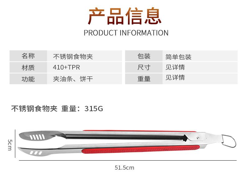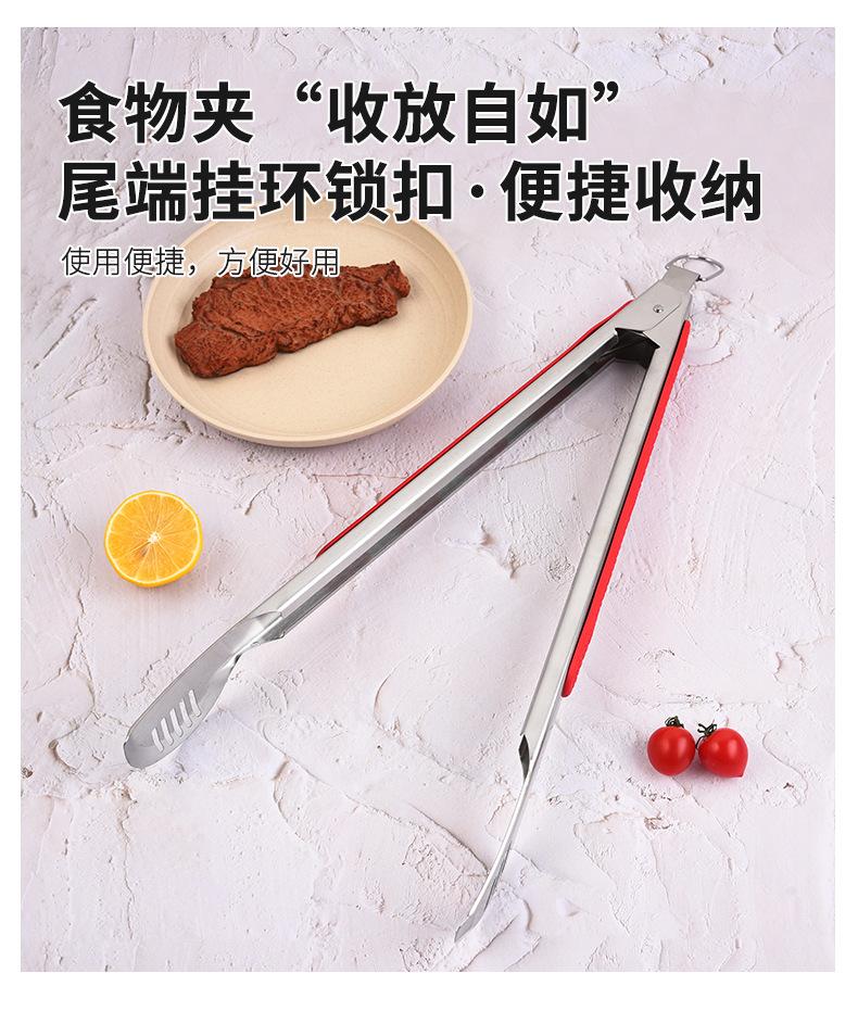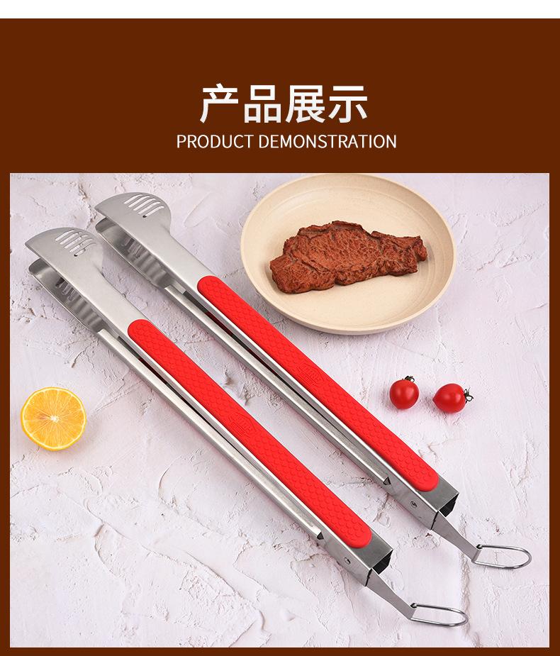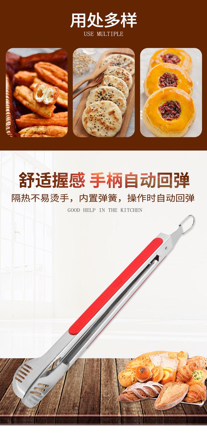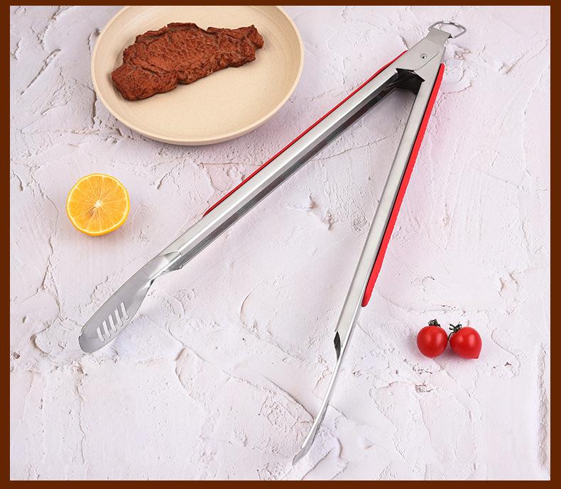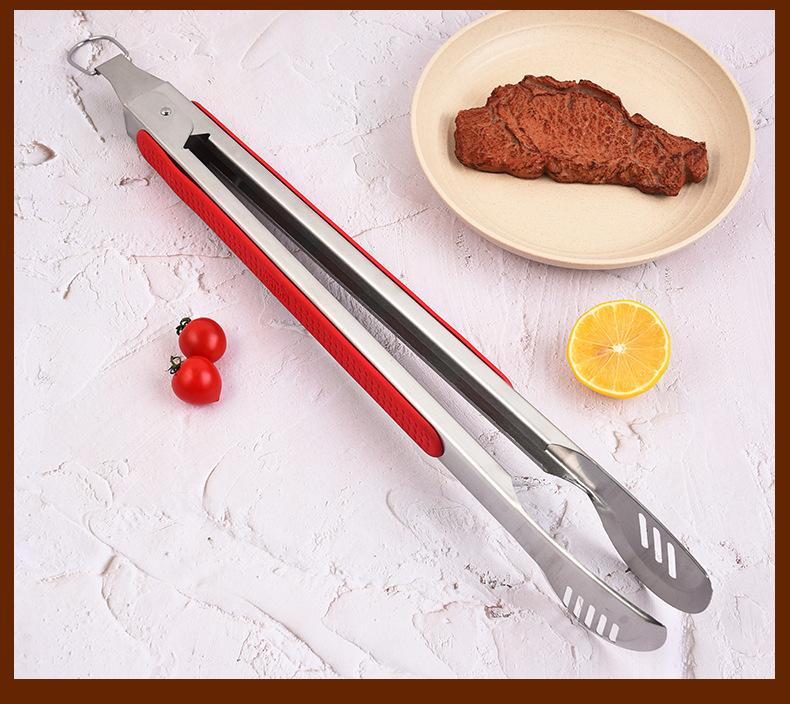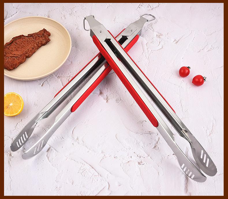 Pinza de acero inoxidable para alimentos, venta al por mayor de fábrica, para barbacoa doméstica, antideslizante, antiescaldaduras, para cocina, para hornear pan, para carne