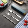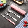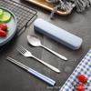 Set de cuchara y palillos de acero inoxidable de alta calidad para estudiantes, portátil de tres juegos, tres piezas, vajilla creativa para niños, tenedor lindo