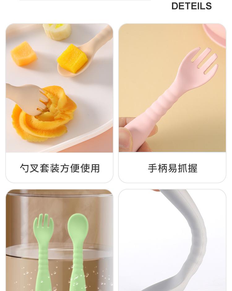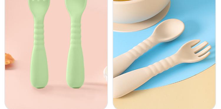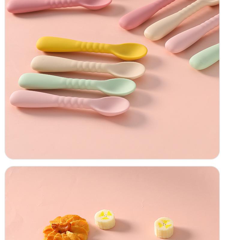 Cuchara y Tenedor para Niños, Cuchara Suave de Silicona para Comida de Bebé, Cuchara de Entrenamiento para Bebé de Silicona de Grado Alimenticio, Suplemento Alimenticio Resistente a Altas Temperaturas