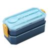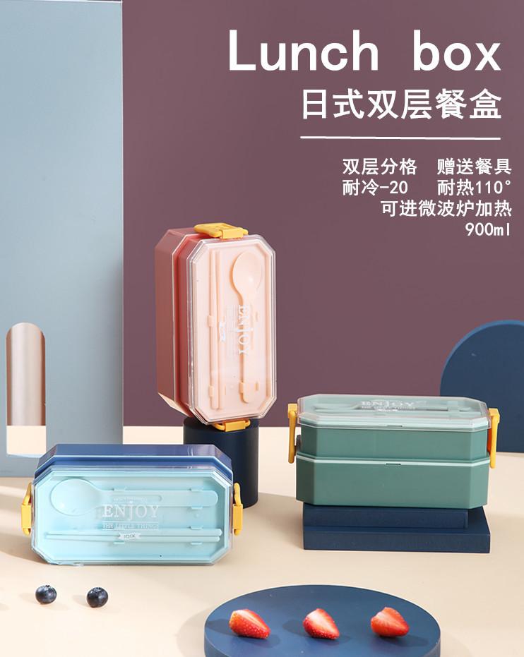 Lonchera de plástico de doble capa para estudiantes, lonchera de frutas para microondas con vajilla, comida ligera, estilo creativo, almuerzo japonés.