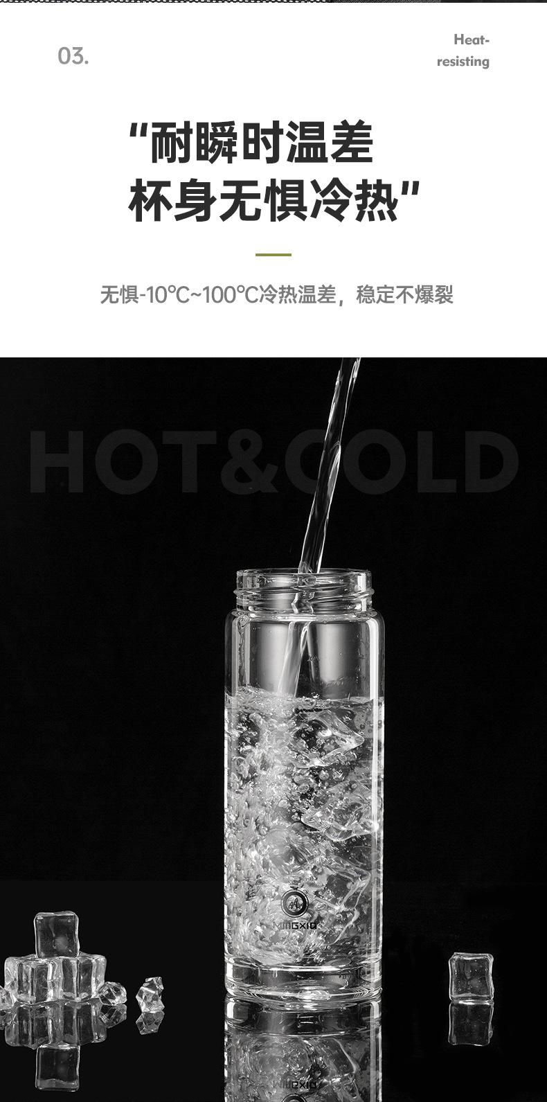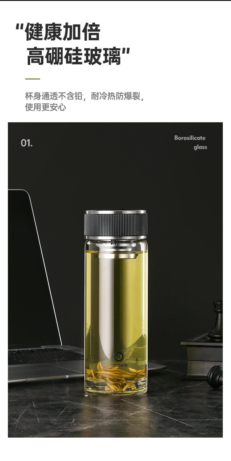 Taza de té con filtro de borosilicato espesado de vidrio de una sola capa Mingxia con colador, taza de regalo, impresión al por mayor