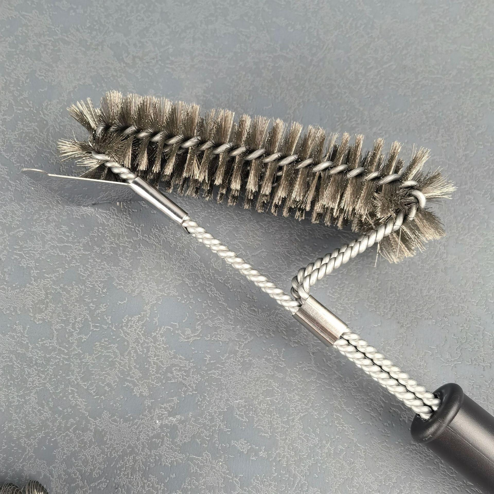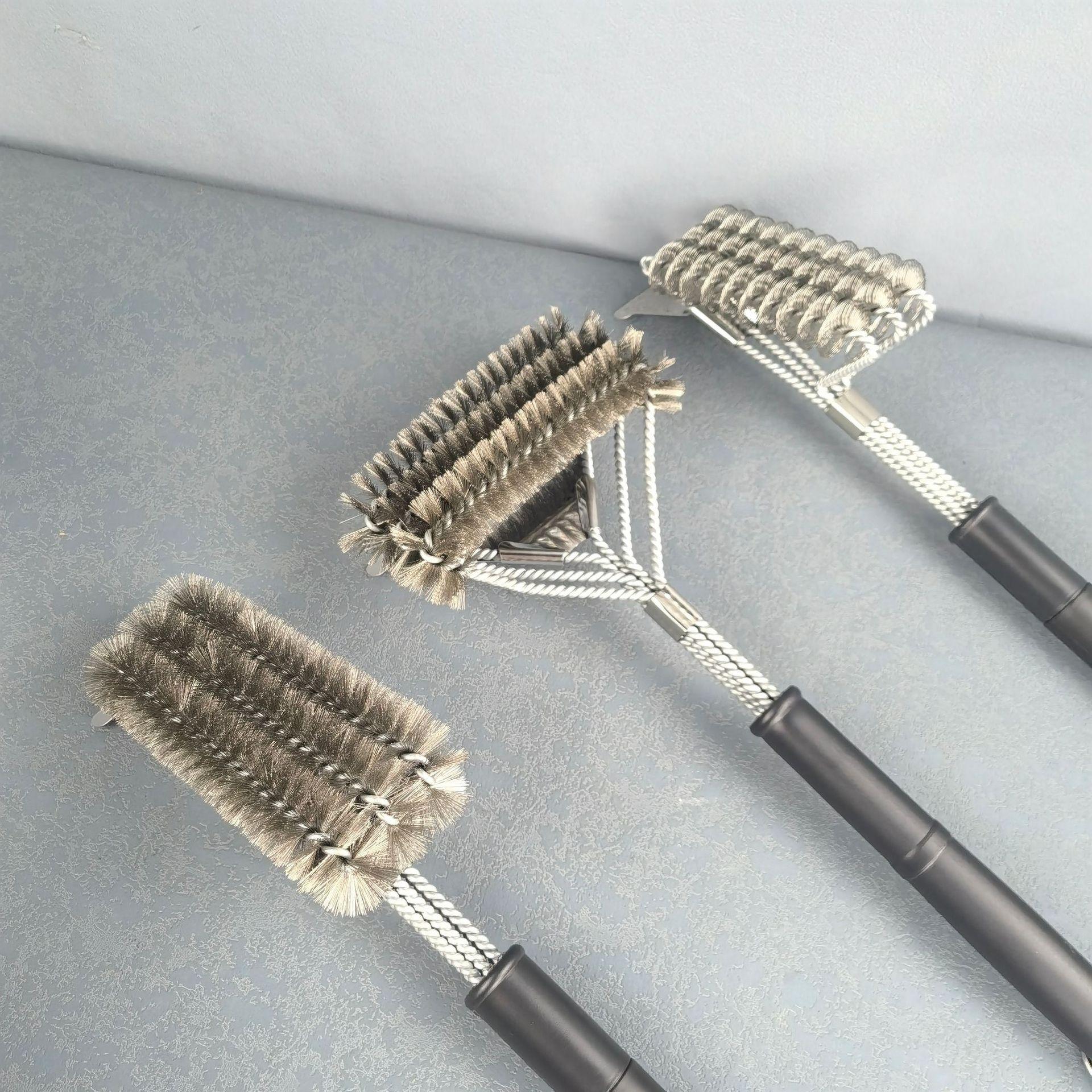 Cepillo de limpieza de barbacoa de acero inoxidable Cepillo de alambre Accesorios de barbacoa Cepillo de cuchillo de mango largo Cepillo de limpieza de parrilla